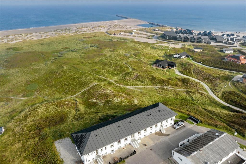 Stranden ligger for enden af byens hovedvej Vesterhavsgade. Heromkring finder man også Nordsø Akvariet, flere spisesteder, is-hus og selvfølgelig et stort fiskehus med salg af frisk fisk og skaldyr.