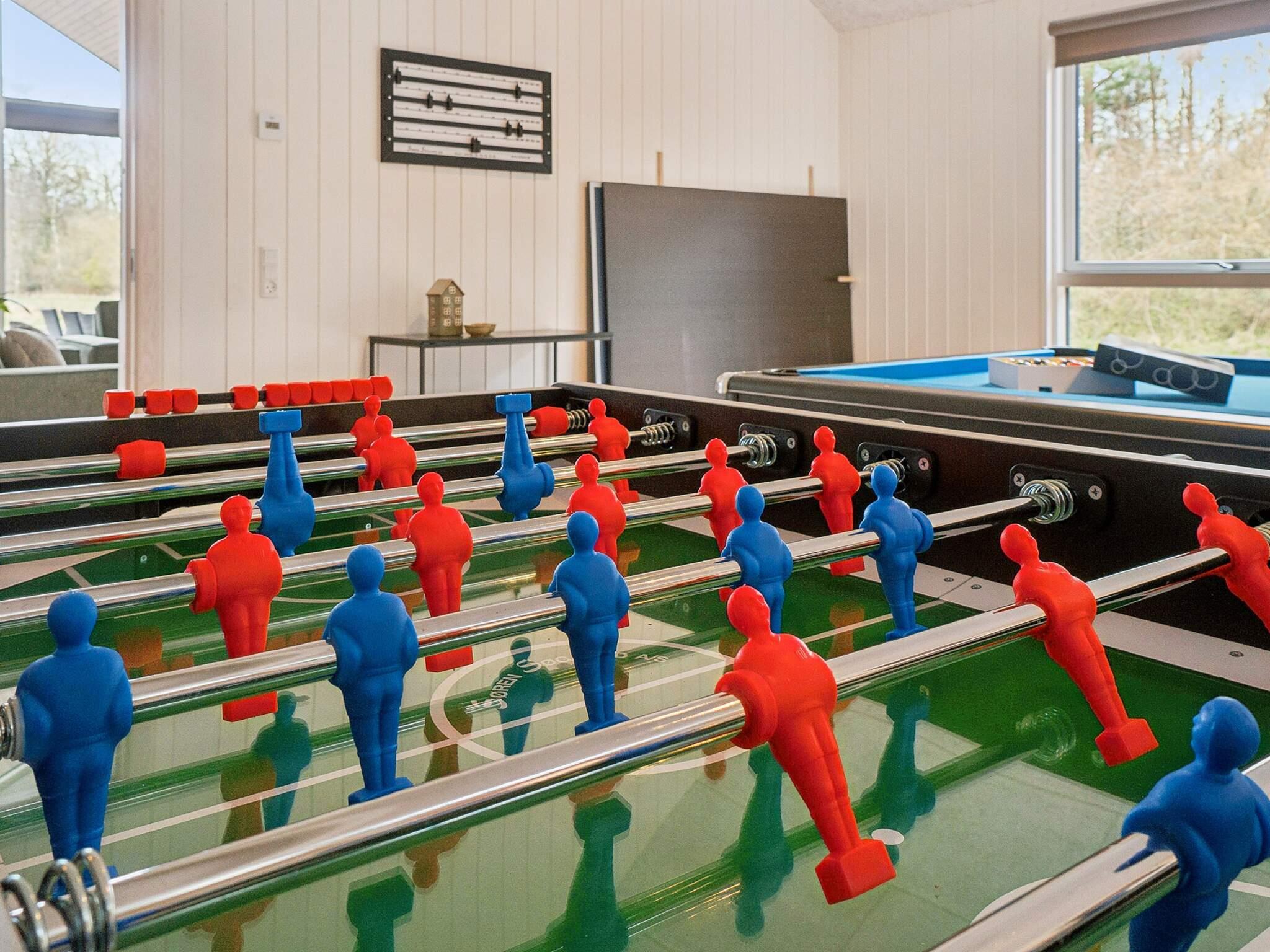 Sommerhuset byder på masser af aktiviteter for alle aldre. I aktivitetsrummet kan I dyste i billard, bordtennis, bordfodbold og dart – perfekte muligheder for sjove og spændende konkurrencer. Når der er brug for en pause, kan man slappe af i sofaområdet og følge med i kampene fra sidelinjen.