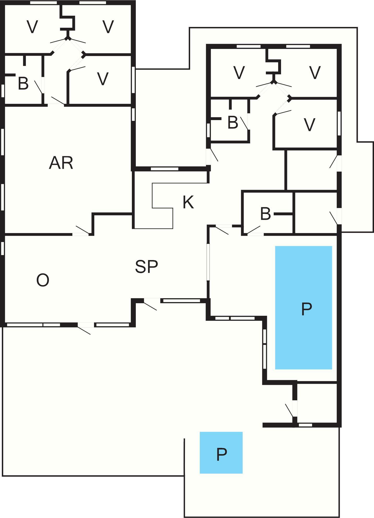 6 Soveværelser: (1DS)+(1DS)+(2S)+(2S)+(2S)+(2S)