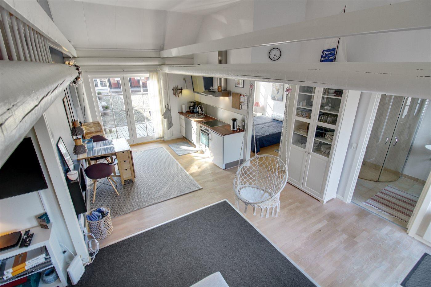 Ferielejligheden egner sig til 4 personer. Ferieboligen er på 49 m² og er bygget i 1870. I 2006 gennemgik ferieboligen en renovering. I 2018 gennemgik ferieboligen en delvis renovering. Det er ikke tilladt at medbringe husdyr. Ferieboligen er udstyret med energibesparende varmepumpe. Frysekapacitet på 10 liter. Til de små er der 1 stk. barnestol.