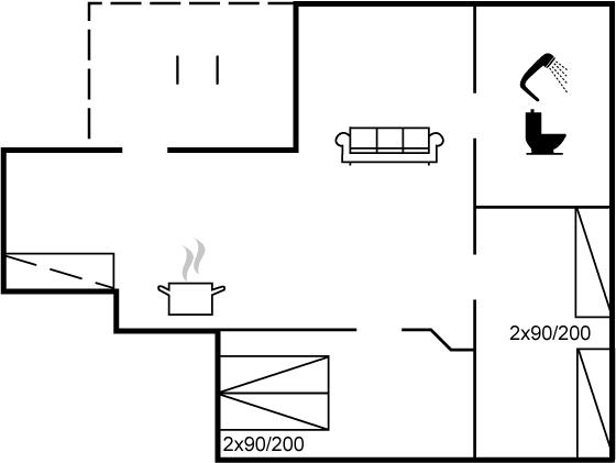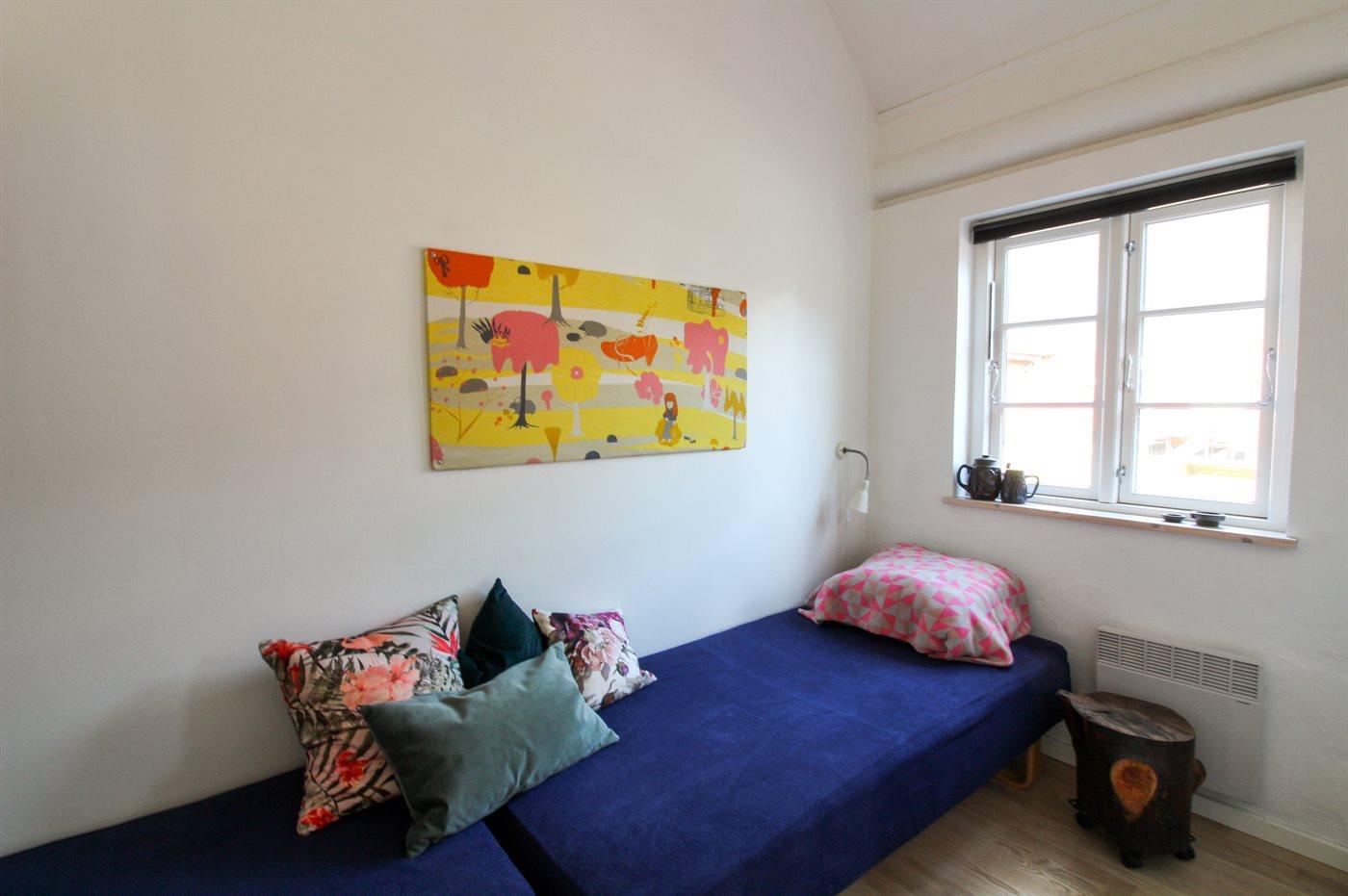 Der er i alt 2 soveværelser. Sovepladserne fordeler sig på: 2 sovepladser i dobbeltseng. 2 sovepladser i enkeltsenge.