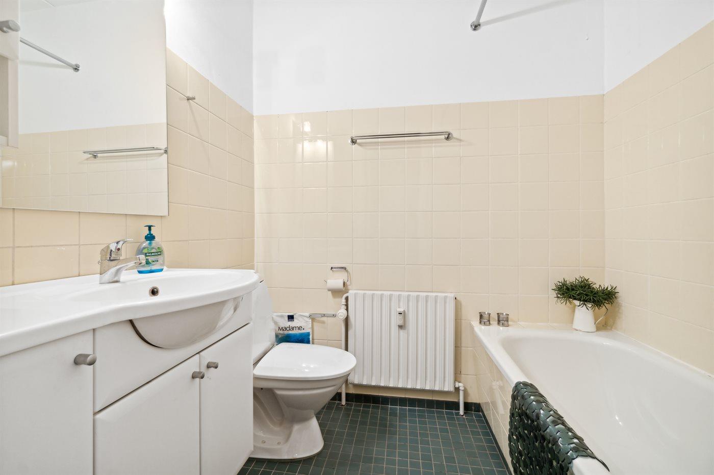 Alle klinkegulve er opvarmet med fjernvarme, hvilket giver en behagelig rumtemperatur. Lejligheden har indenfor de seneste år moderniseret med et nyt badeværelse.