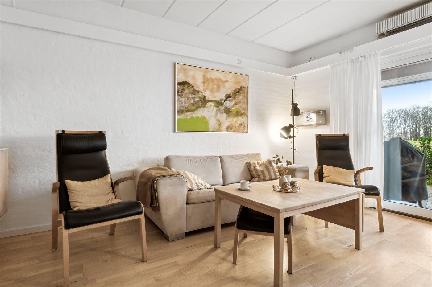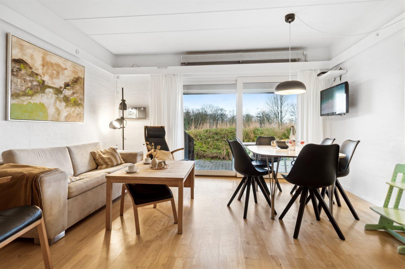 En velindrettet ferielejlighed, hvor der er lagt vægt på god møblering, vedligeholdelse og hygge. Til lejligheden hører en delvis overdækket fliseterrasse, som er afskærmet af bevoksning ud mod fællesarealerne.