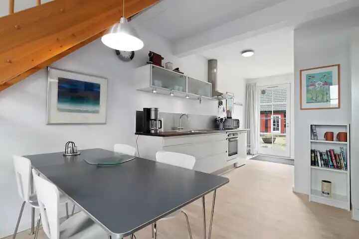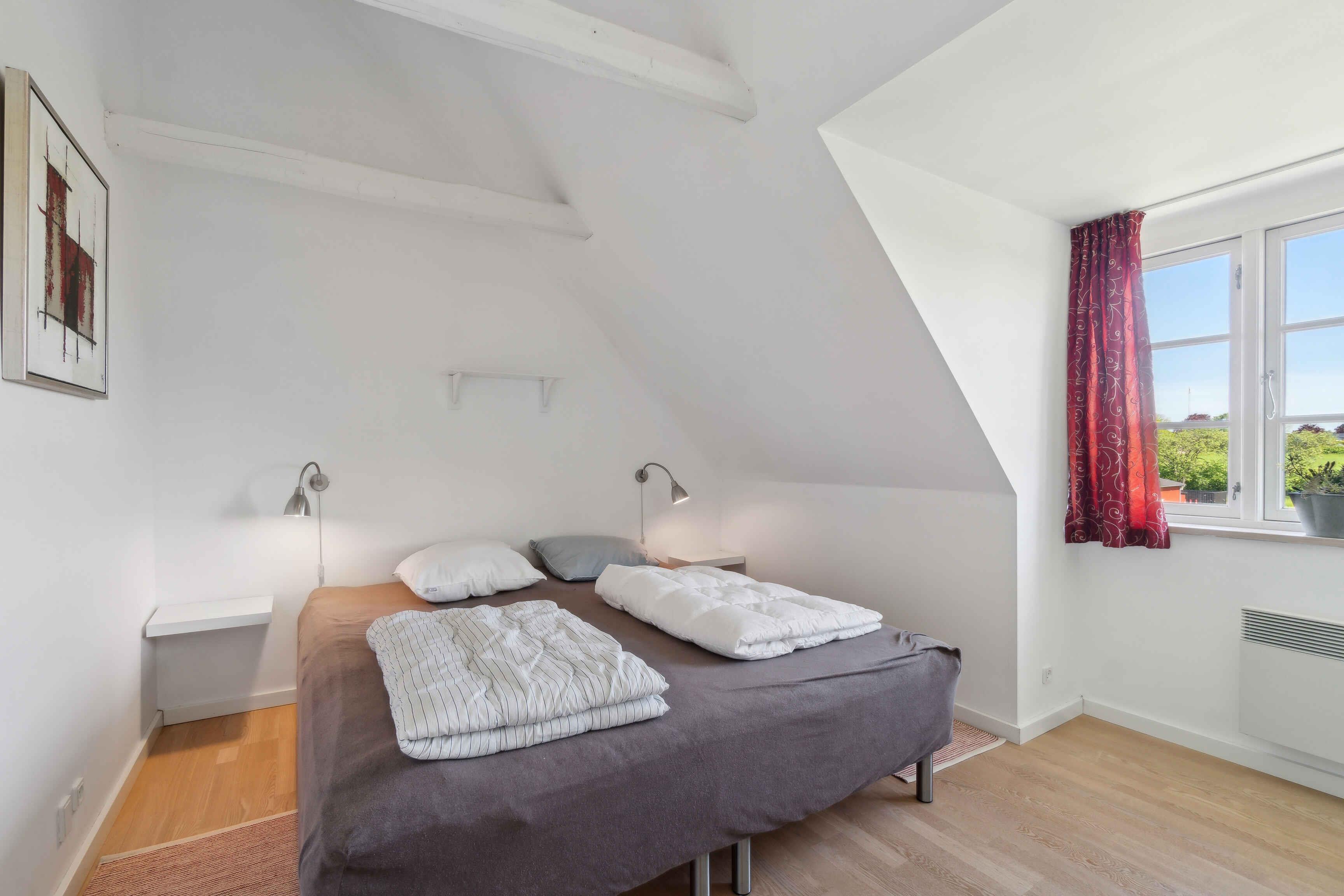 Nyd ferien i denne charmerende og velholdte ferielejlighed, ideelt for fire personer. Huset er en del af en tidligere gård med flere ferielejligheder og byder på en hyggelig atmosfære. Fra lejligheden har man udsigt til fælles opvarmet pool. Boligen er på 66 m² fordelt på to etager. Stueetagen rummer opholdsrum, køkken og badeværelse, mens begge soveværelser ligger på første sal. En varmepumpe sikrer et behageligt indeklima året rundt. Udendørs kan ferien nydes på terrasserne på begge sider af boligen. Her er plads til afslapning og måltider i det fri, uanset tidspunkt på dagen. En stor fælles pool giver mulighed for afkølende dyp i sommermånederne. Poolen er opvarmet fra 15. juni til 15. september, hvilket forlænger badesæsonen. Området byder på smuk natur og spændende oplevelser. Blot en kort køretur væk ligger brede sandstrande, perfekte til lange gåture, svømmeture og afslapning ved havet. Nærområdet inviterer til aktiv ferie. Tag på cykeltur gennem skovklædte stier, besøg historiske seværdigheder eller nyd lokale specialiteter på hyggelige caféer og restauranter. Bornholm er kendt for sit særlige lys og dramatiske klippekyst. Udforsk maleriske fiskerlejer, kunsthåndværkere og markeder med lokale delikatesser. Dette feriehus kombinerer komfort, skønne faciliteter og en beliggenhed, der gør det nemt at opleve alt det bedste, Bornholm har at byde på. BEMÆRK FORBRUG ER INCL. I PRISEN