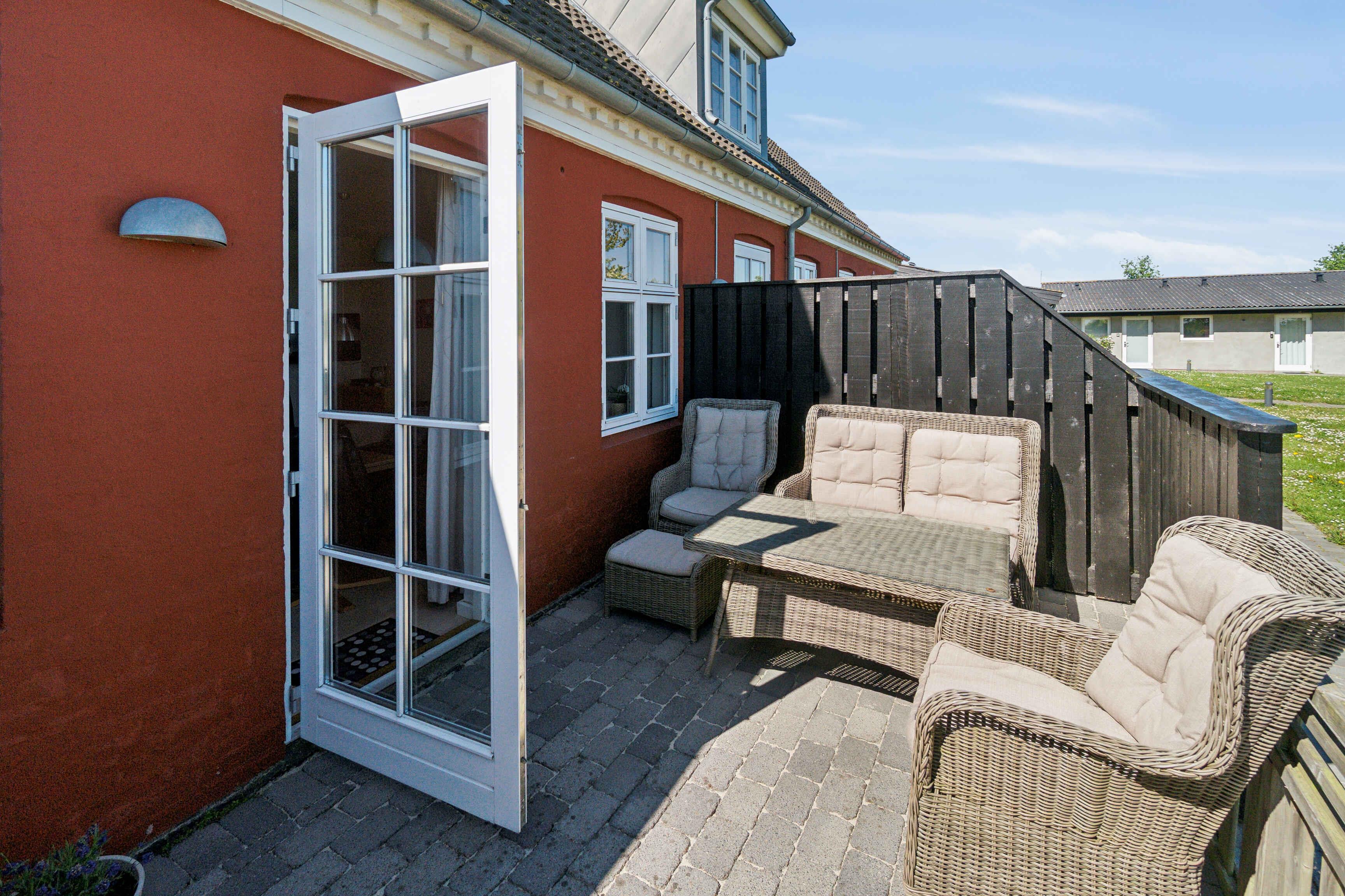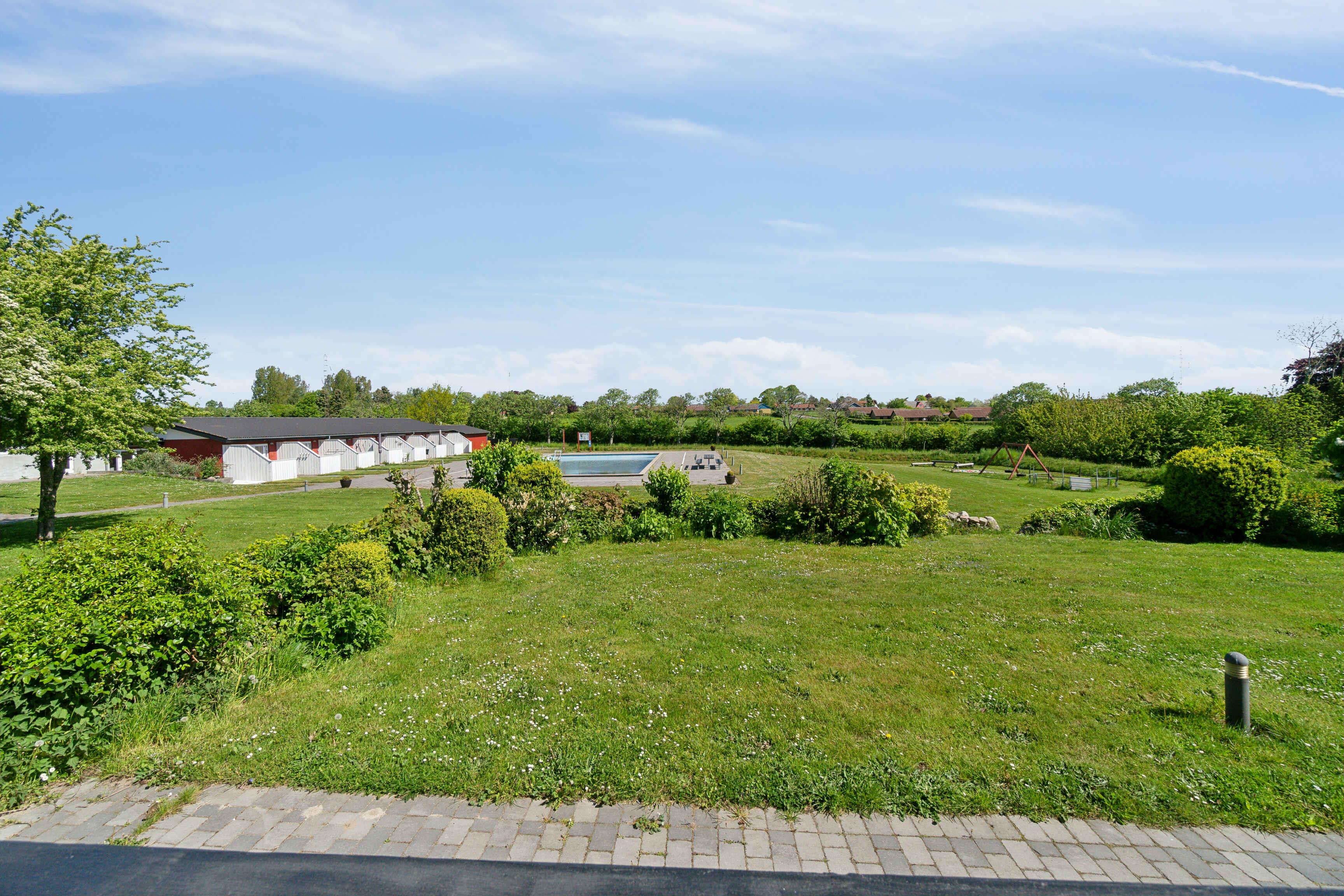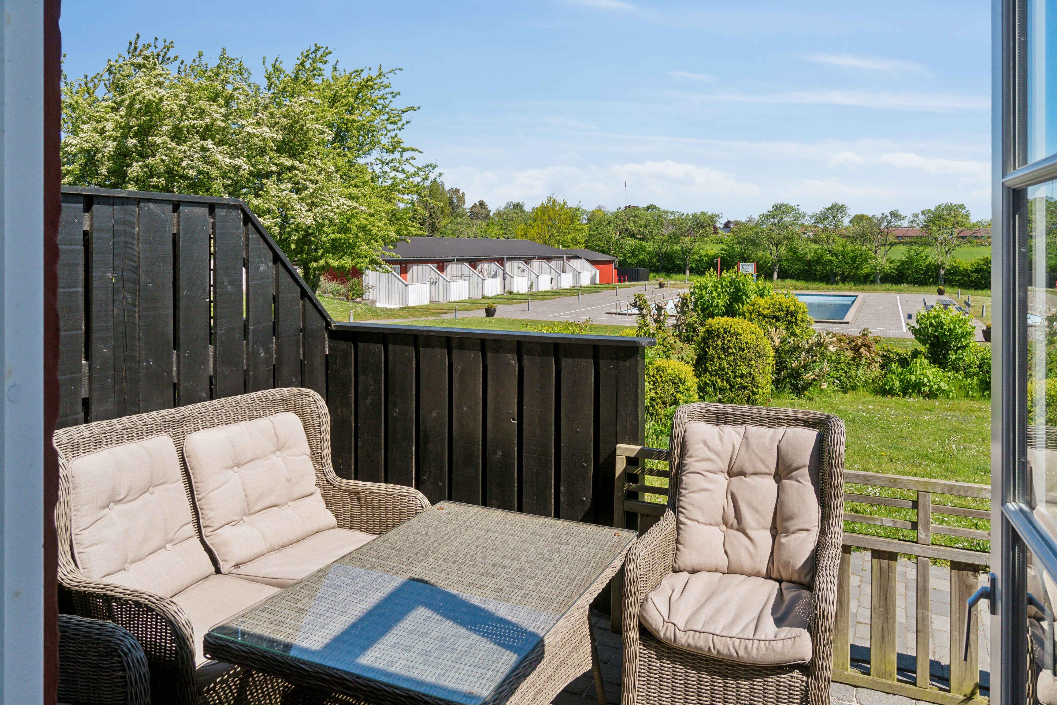 Charmerende ferielejlighed i Aakirkeby med udsigt til opvarmet fælles pool og to terrasser.