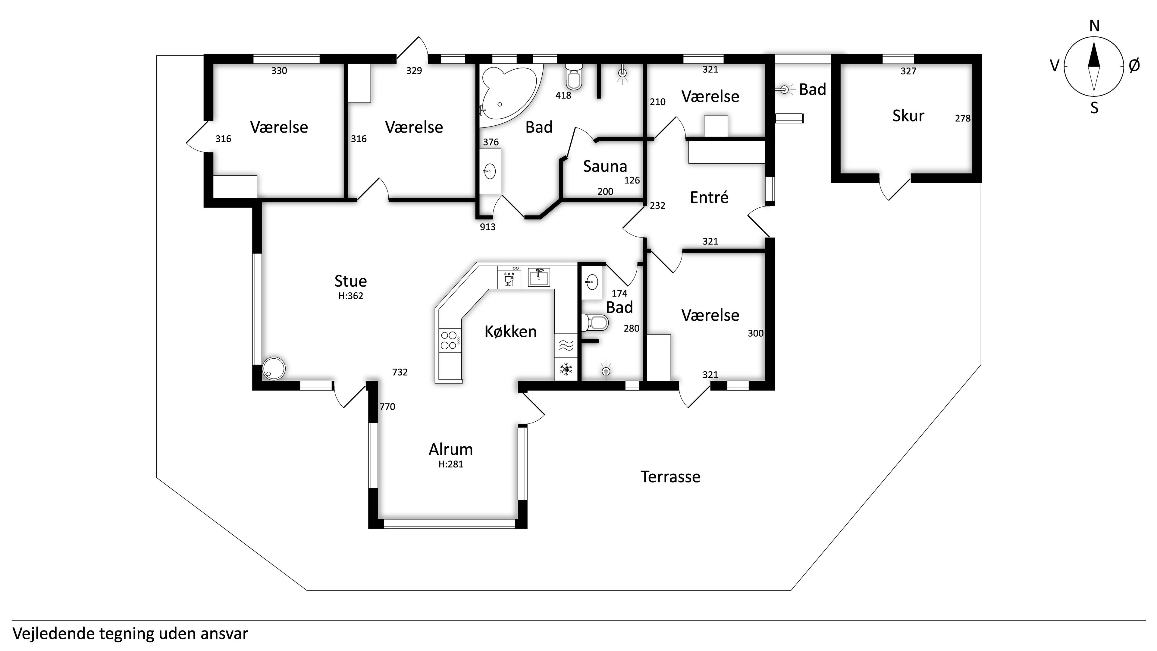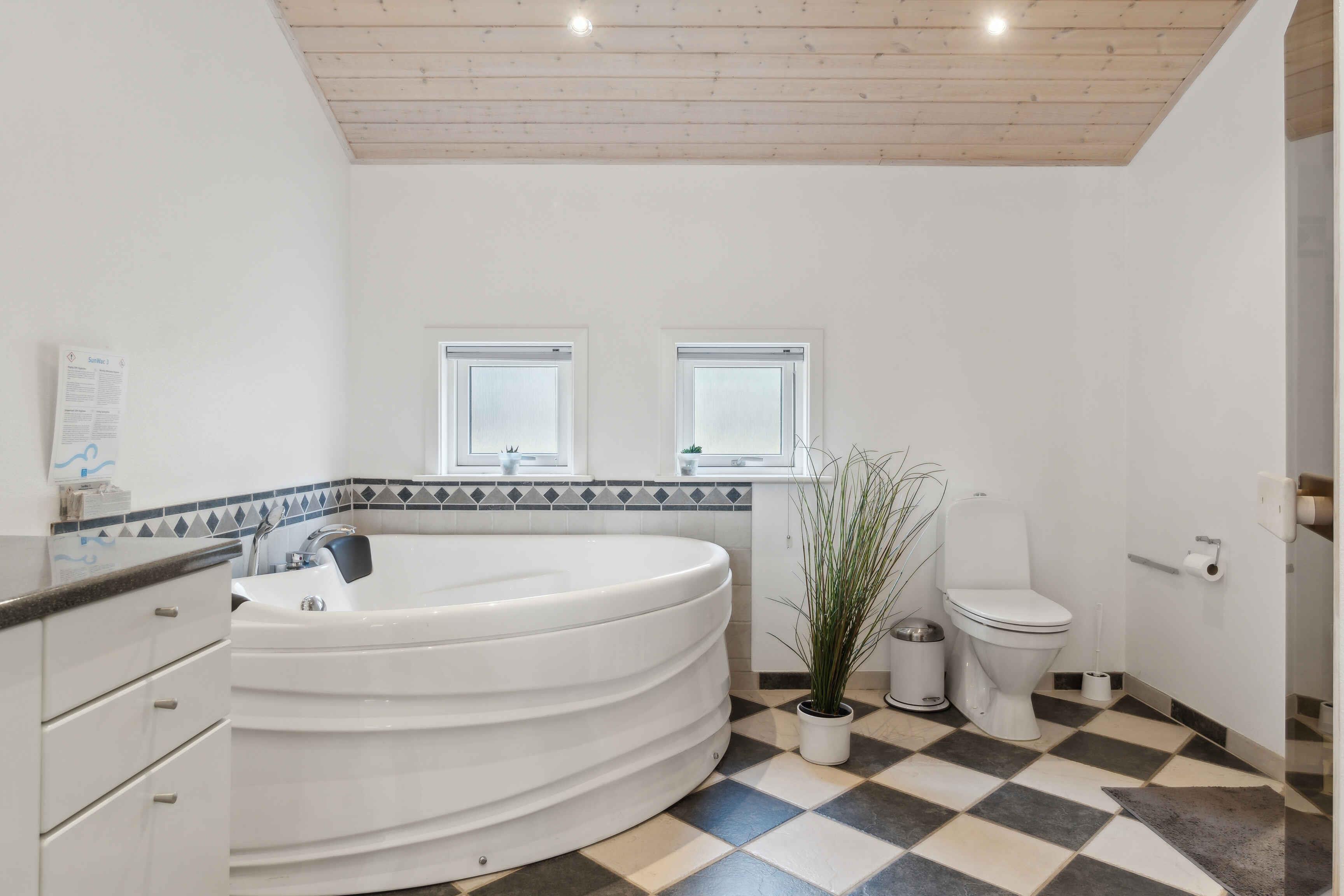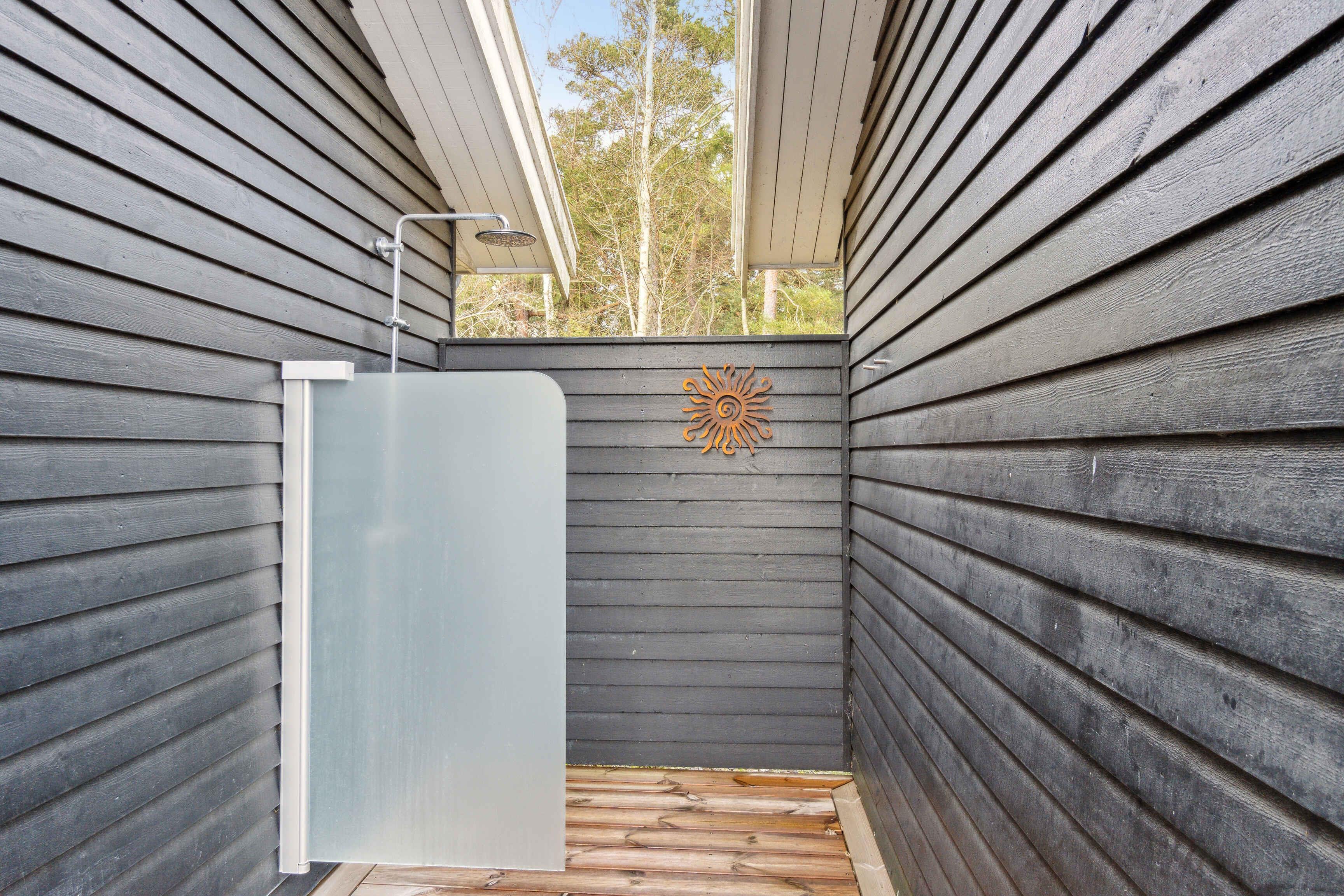 Her kan du holde et dejlig ferie i et smukt og naturskønt område i Øster Sømarken. Dejligt køkken med spiseplads, åbent ind til stuen. Huset er lyst med store vinduespartier og flere udgange til terrassen. Huset er moderne møbleret med lædersofa, gode stole og bord. Det store badeværelse har spabad og godt med plads. Der er gulvvarme i badeværelserne, stuen og køkken. Tre soveværelser har dobbeltsenge og et værelse har to enkelt senge. Alle senge er gode boksmadrasser og der er god plads i værelserne. Nyd livet udenfor På den store terrasse som vender mod syd, findes der to sæt havemøbler. En lille del af terrassen er overdækket, og her er der mulighed for at søge skygge. Udendørs bruser kan bruges fra primo maj til medio september. Udhuset kan benyttes til opbevaring af cykler, barnevogne, bagage eller andet. Der er plads til parkering af bil lige ved siden af huset, hvor der er elbils-lader (Type 2 med 11 kW). Kom tæt på de lokale oplevelser Huset ligger tæt ved Sømarkens dejlige børnevenlige sandstrand. Det ligger lidt tilbagetrukket fra de andre huse i området. På Holsteroddevej findes der en legeplads og flere åbne pladser velegnet til leg. Bakkarøgeriet ligger tæt på området, og her kan man spise frokost.