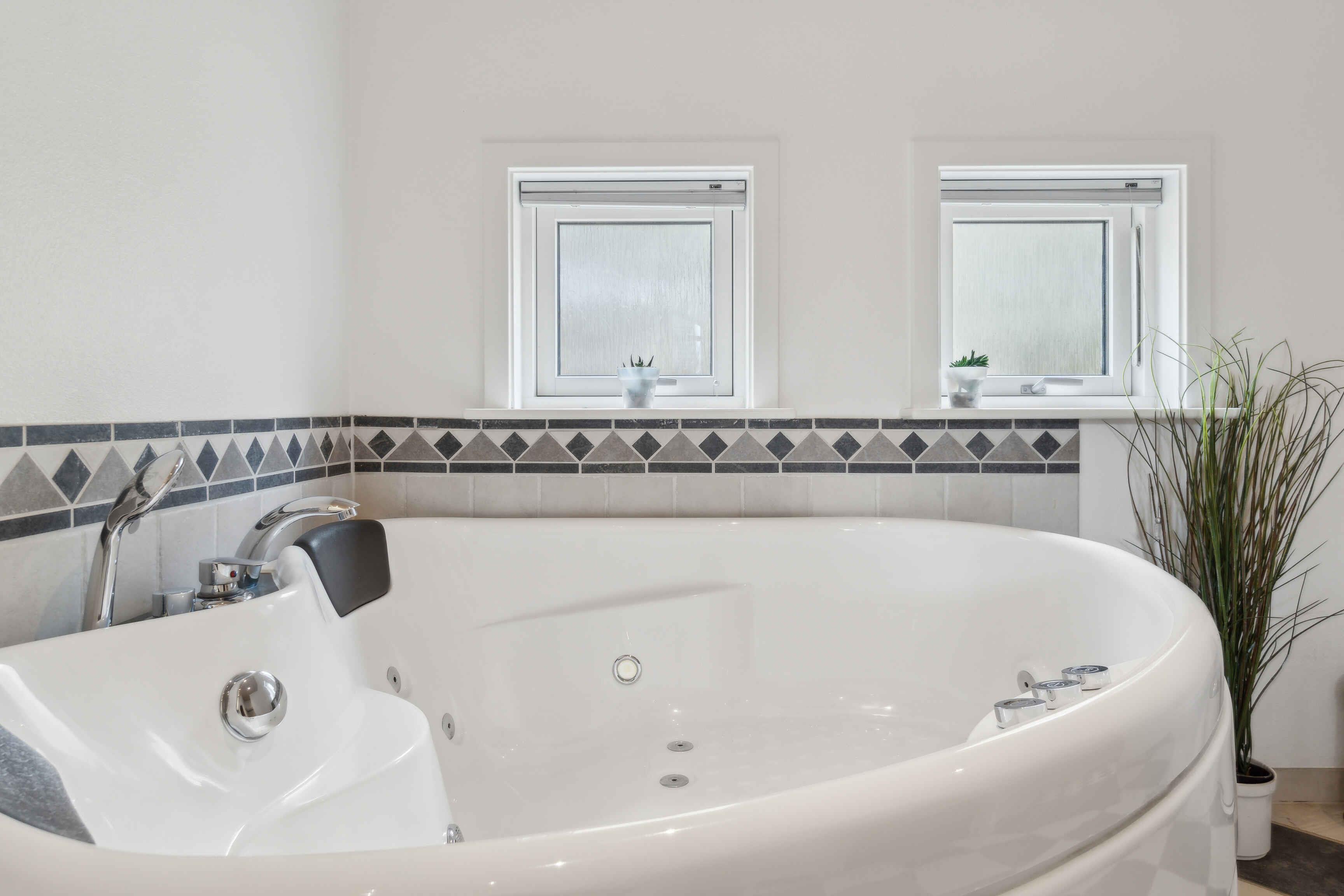 Lækkert sommerhus med spa, sauna og stor terrasse tæt på børnevenlig sandstrand i Øster Sømarken.