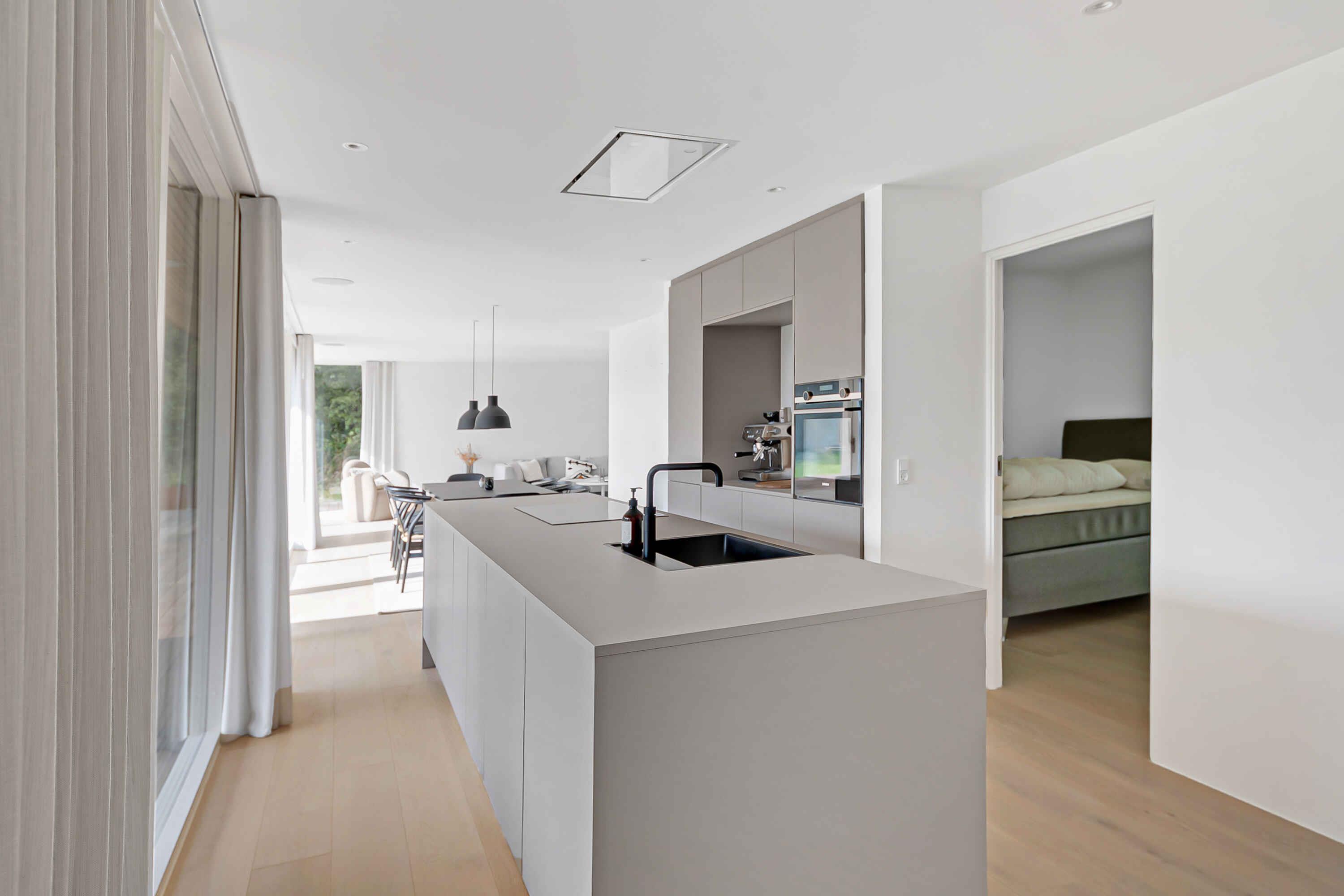 Moderne luksus sommerhus i roligt område kun 10 minutters gang fra en af ??Bornholms smukkeste naturlige sandstrande. Delvis overdækket stor sydvendt terrasse, lysindfaldet indvendig gennem gulv-til-loft vinduer. El-lader til bil til rådighed.