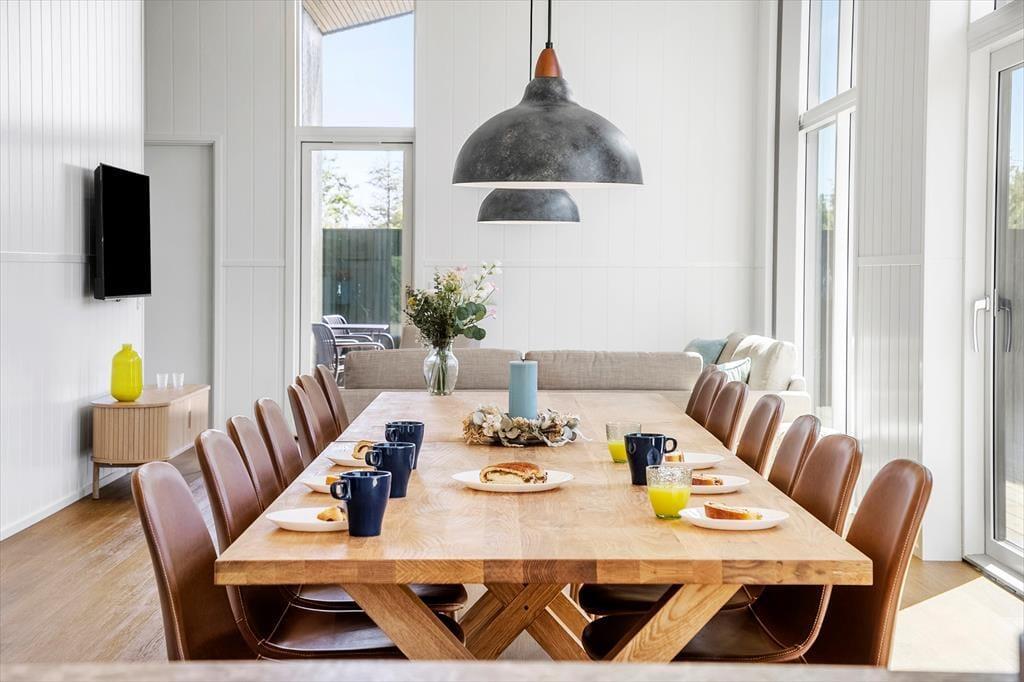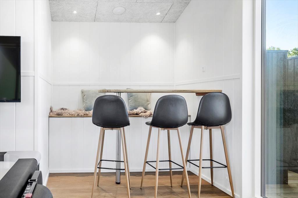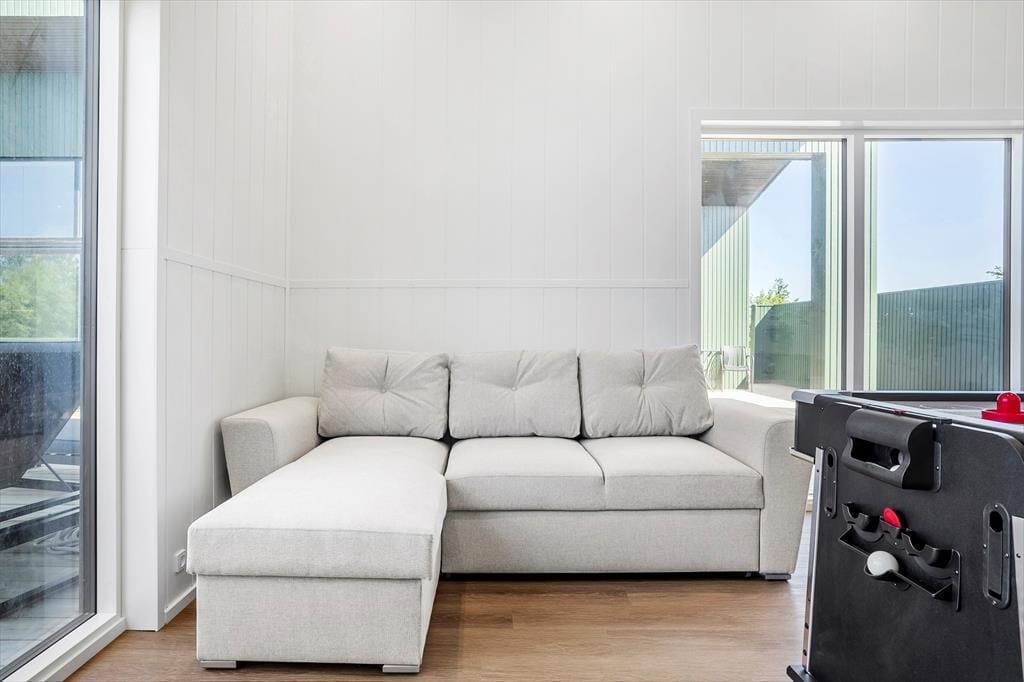 Indenfor møder du et lyst, moderne og gennemført indrettet sommerhus, hvor der er kræset for detaljerne fra ende til anden. Huset er opført i 2025 og emmer af kvalitet og komfort – og det mærkes, så snart du træder over dørtærsklen. Indretningen balancerer perfekt mellem det stilrene og det hyggelige, så både morgenkaffen og aftenhyggen får de allerbedste rammer. Det åbne opholdsrum indbyder til fællesskab, hvad end I spiller spil, laver mad eller lægger planer for næste udflugt i området. Huset rummer plads nok til, at hele flokken kan finde sin egen hyggekrog – og børnene vil elske den lille ekstra opmærksomhed: annekset, der fungerer som aktivitetsrum med plads til leg, grin og gode stunder væk fra de voksnes snak. Der er desuden mulighed for at tage både hund og kat med – to kæledyr er nemlig velkomne i huset.