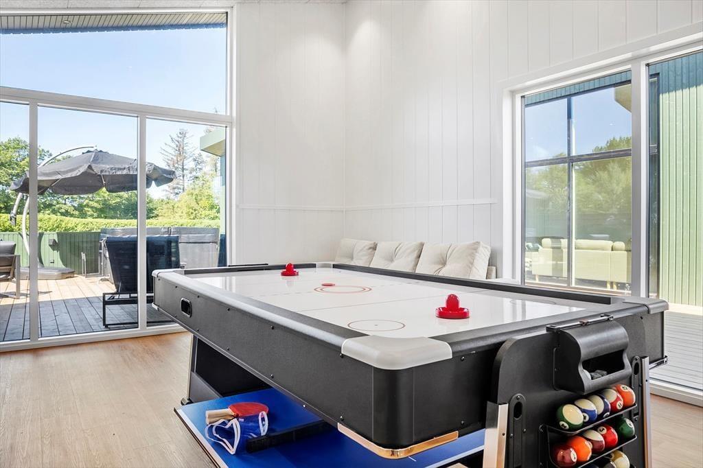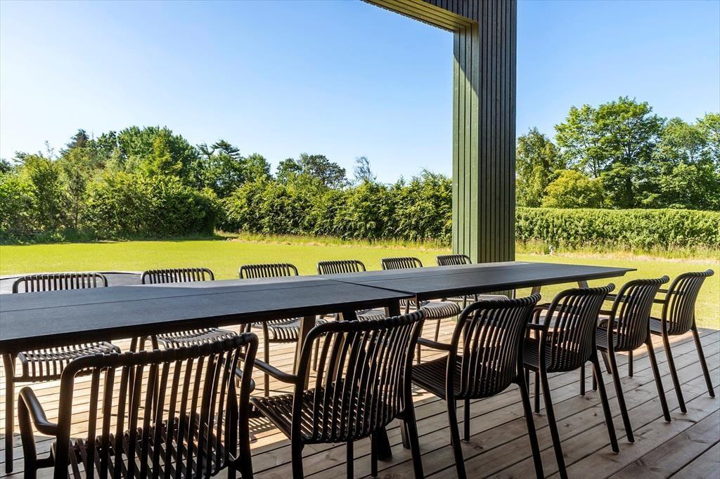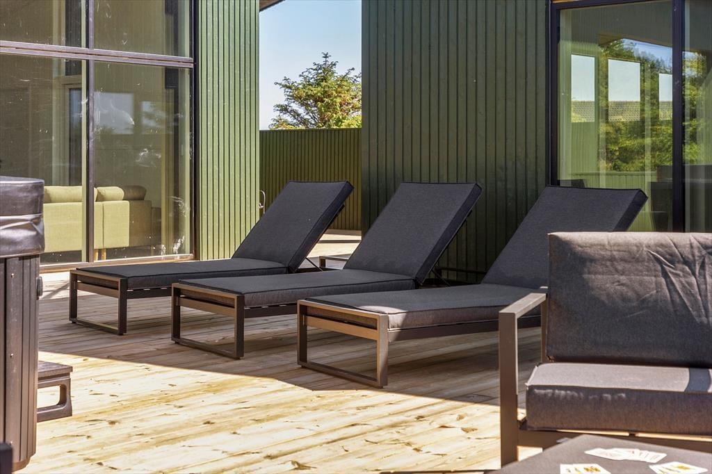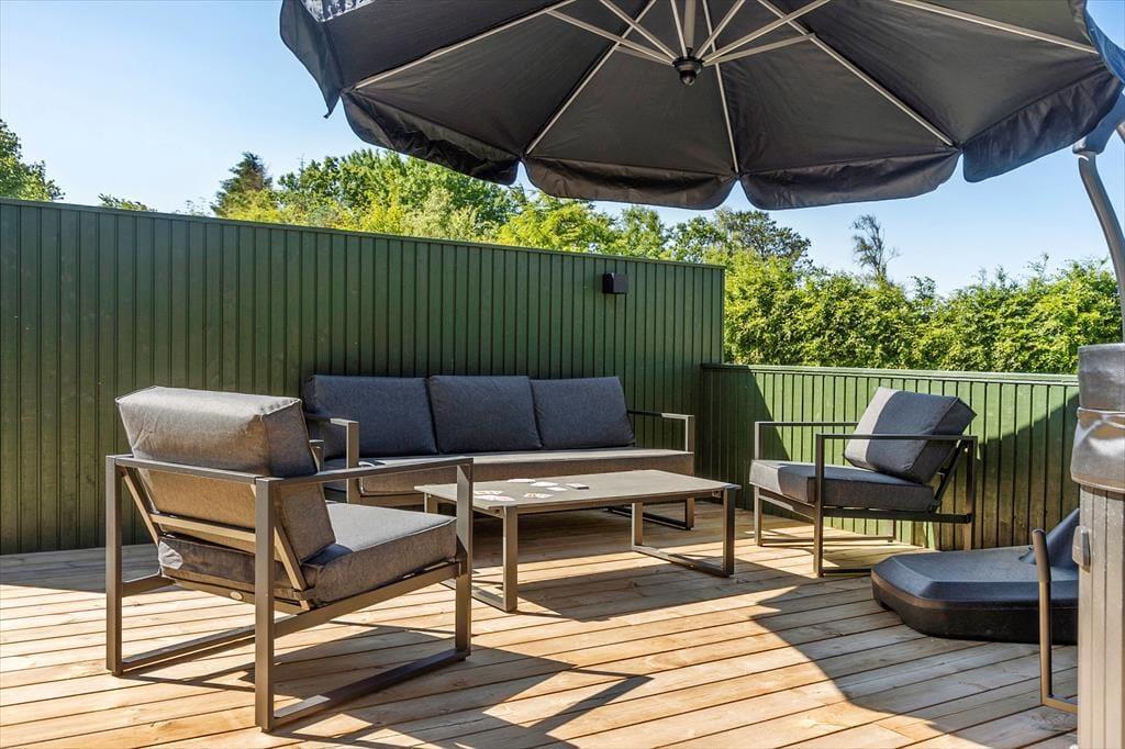 Når solen skinner, eller vinden er mild, rykker ferien helt naturligt udenfor – og her lever huset i den grad op til feriedrømmene. Den store terrasse strækker sig rundt om huset og byder både på åbne og overdækkede områder, så du altid kan finde en plads i solen – eller i skyggen. Om aftenen kan I tænde op i grillen og runde dagen af med et glas vin i udespaen, mens stjernerne langsomt toner frem på nattehimlen. Det varme, boblende vand og den friske luft skaber ren wellnessstemning, og måske er det netop her, du finder din nye yndlingsstund. Haven er stor og grøn – perfekt til boldspil, solbadning eller en afslappende lur på et tæppe. Trampolinen giver børnene timevis af sjov og leg, mens de voksne slapper af med en god bog eller en kop kaffe i liggestolen.