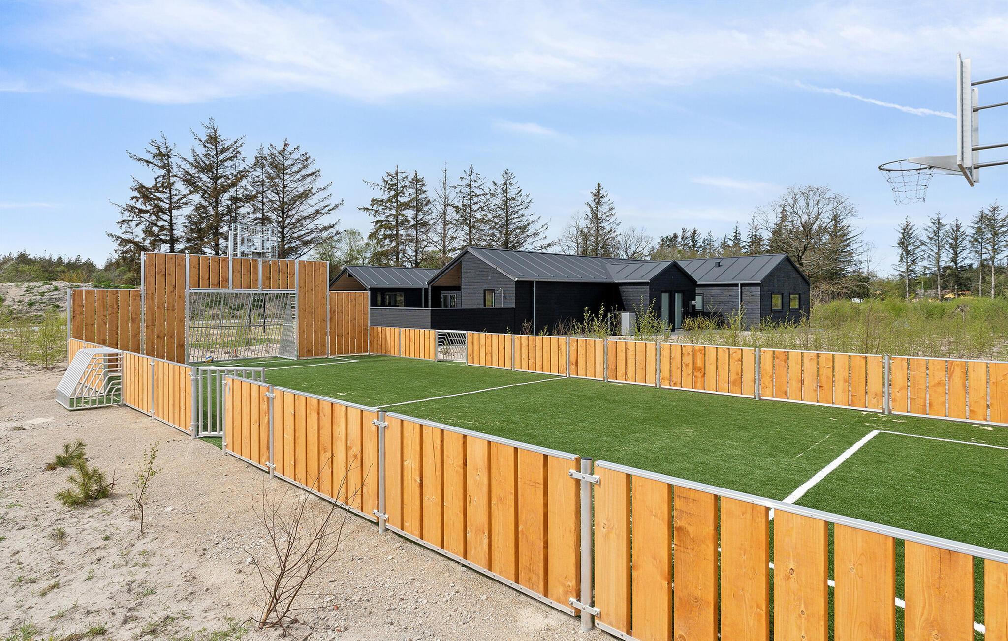 Udeområdet er tilsvarende dejligt og indbyder til sjov, leg og afslapning, når vejret er godt. Børnene får masser af plads, en trampolin og deres helt egen legeplads at boltre sig på, og måske I skal vælge hold til årets store brag på fodboldbanen? På den store terrasse er der masser af siddepladser, hvor I kan nyde måltiderne i det fri, hvis I føler for det, og her kan I også runde en smuk sommerdag af med et godt glas vin under aftensolen og nyde, at I ikke skal tidligt op.