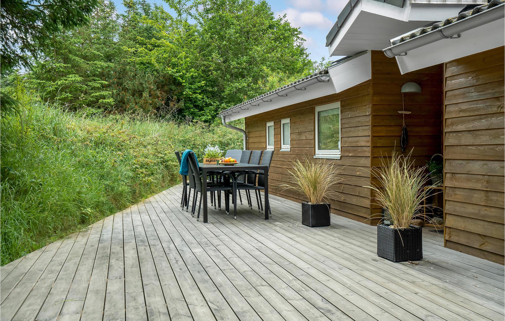 Tilbring en uforglemmelig ferie med familien i dette indbydende sommerhus, der er lyst og indbydende med træpaneler og store vinduer. Stuen med brændeovnen er husets hyggelige hjerte, og på kølige dage og aftener kan I blive varmet igennem i saunaen.