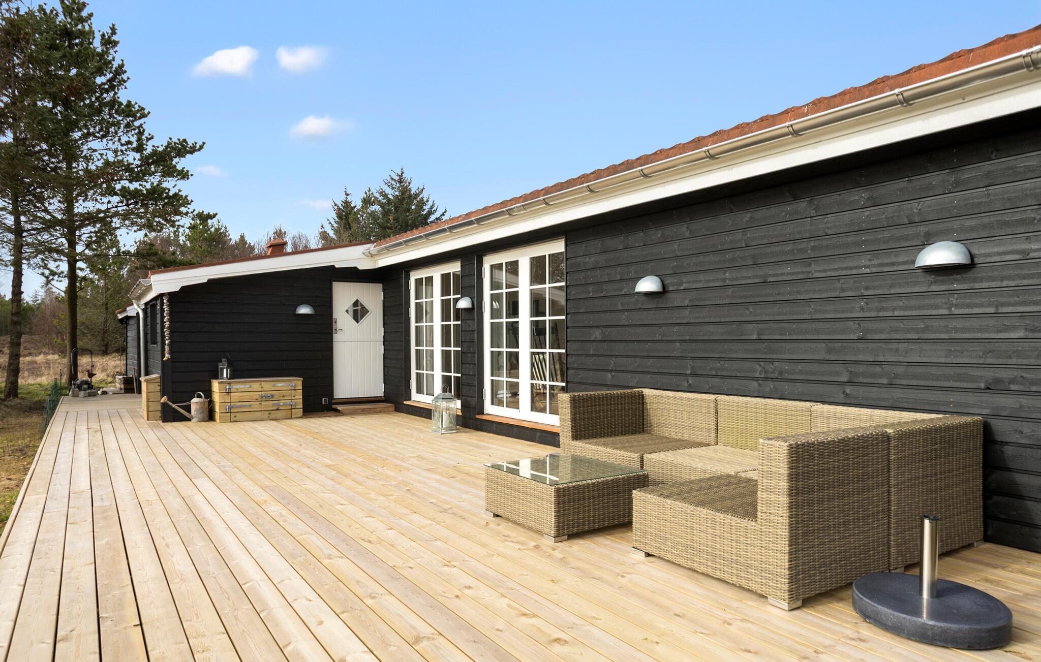 Skønt træsommerhus tæt på stranden i Ålbæk med moderne faciliteter og dejlig terrasse til grill og afslapning.