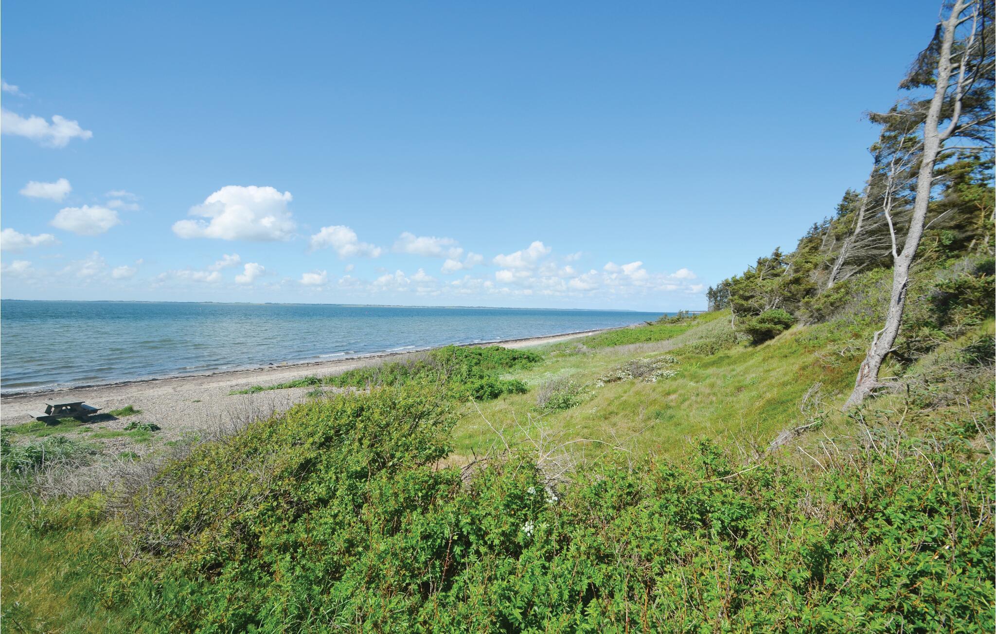 Feriehuset ligger på en naturgrund, hvor der er rig mulighed for at børnene kan boltre sig. Der er indrettet masser af hyggekroge, så det altid er muligt, at finde et godt sted med sol eller læ. Fra huset er der fem minutters gang til Limfjorden og en yderst børnevenlig badestrand. Ved stranden ligger desuden en campingplads med et indendørs badeland, så I altid kan få en dukkert, selv hvis vejret driller. På campingpladsen kan I leje cykler og havkajakker. Der er også mulighed for at spille minigolf.