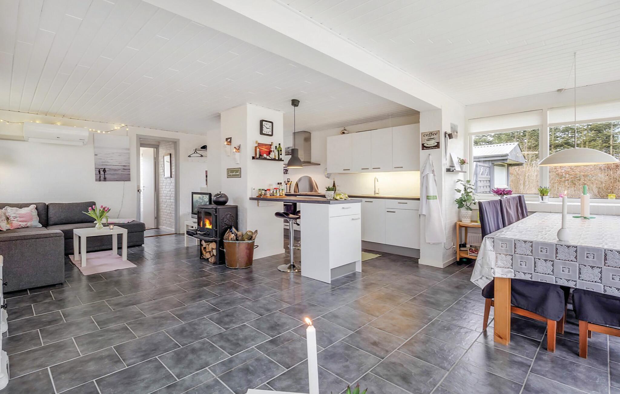 Hyggeligt og moderne feriehus nær Limfjorden med brændeovn og stor naturgrund til børn.