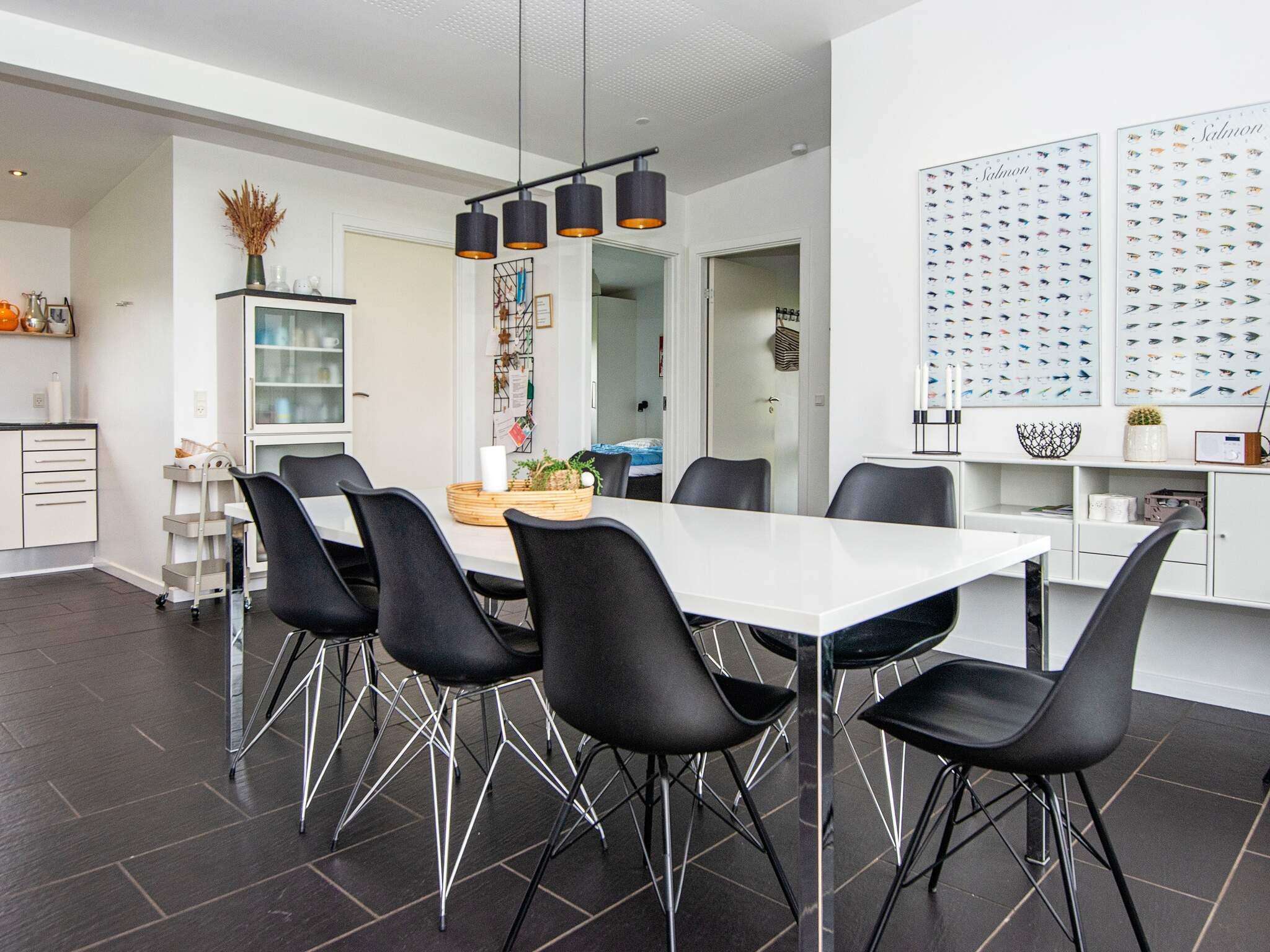 I hjertet af huset er det lyse køkken og opholdsstue i åbent plan, med sydvendte vinduer fra gulv til loft, der giver masser af naturligt lys og udsigt over den store græsplæne og den smukke natur omkring boligen. Herfra har du direkte adgang til de udendørs terrasser, som er ideelle til at nyde måltider i den friske luft, slikke solen eller slappe af med familie og venner.