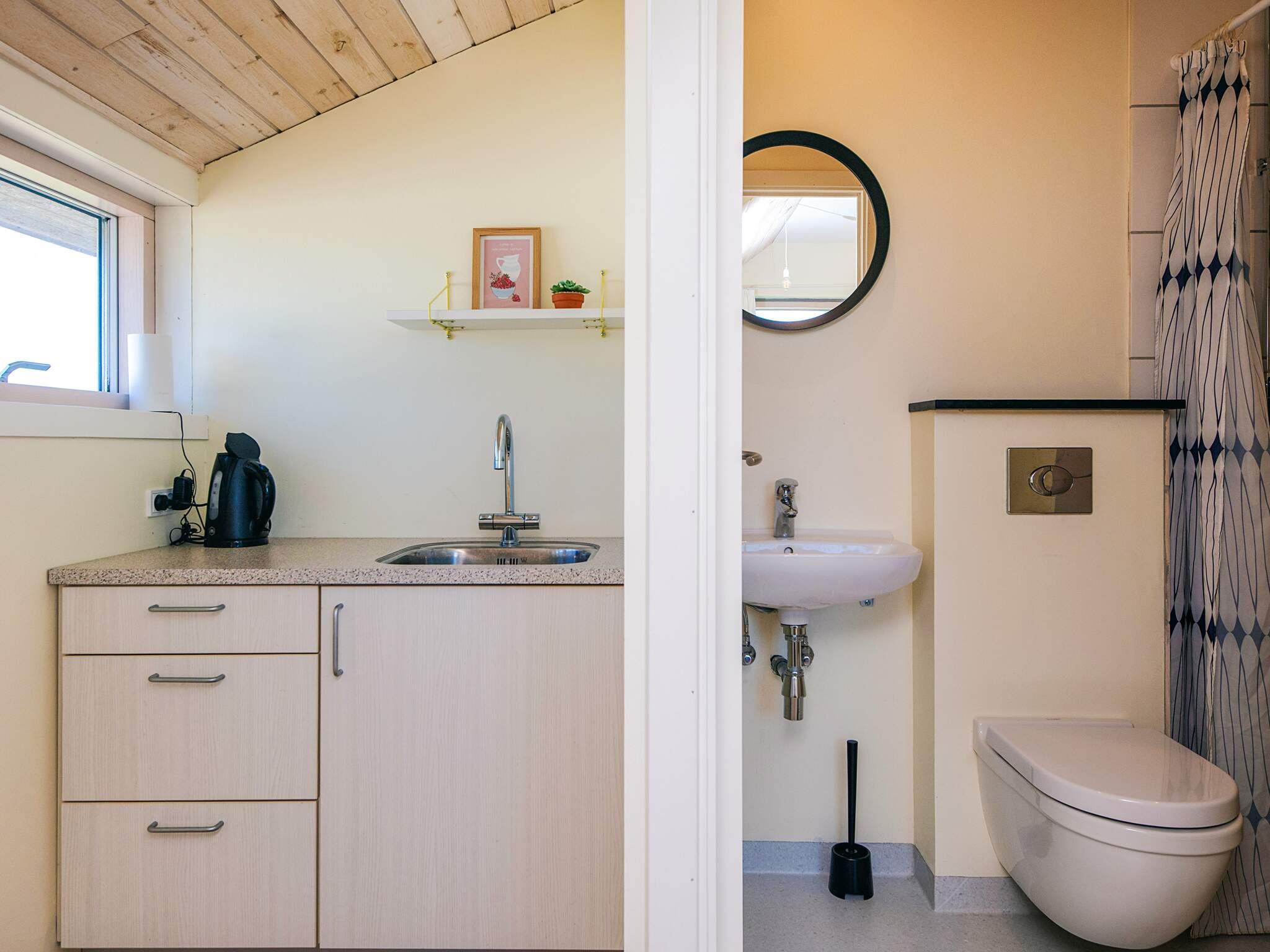 Bad/wc: Wc, håndvask, bruseniche, gulvvarme
