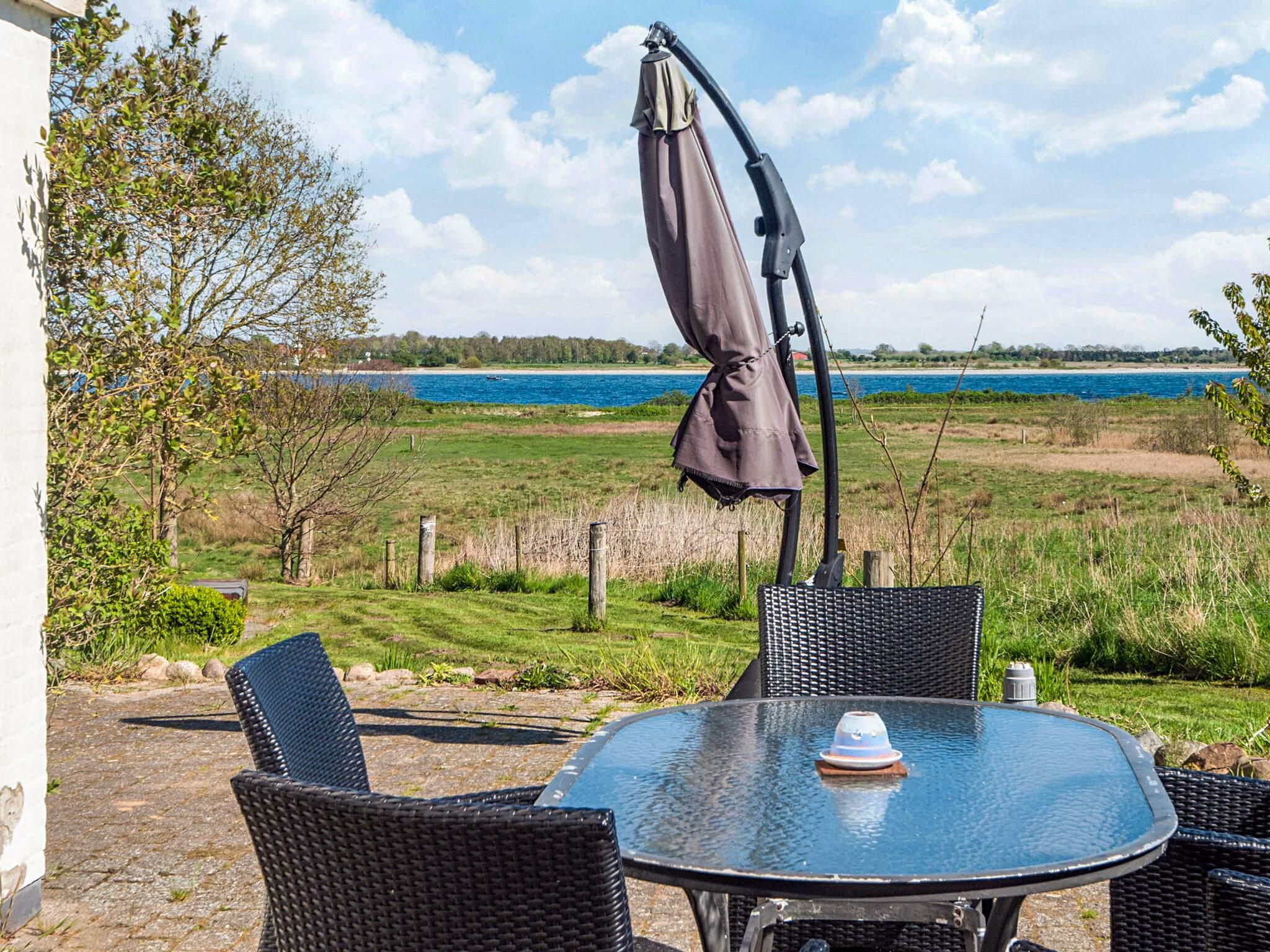 Sommerhus beliggende lige ned til Lillebælt. Fra terrasse og hus er der flot panoramaudsigt over Årøsund. Udsigten kan også nydes fra det udendørs standvandsspabad på terrassen. Bemærk: Billede af udendørs spabad er et modelbillede.