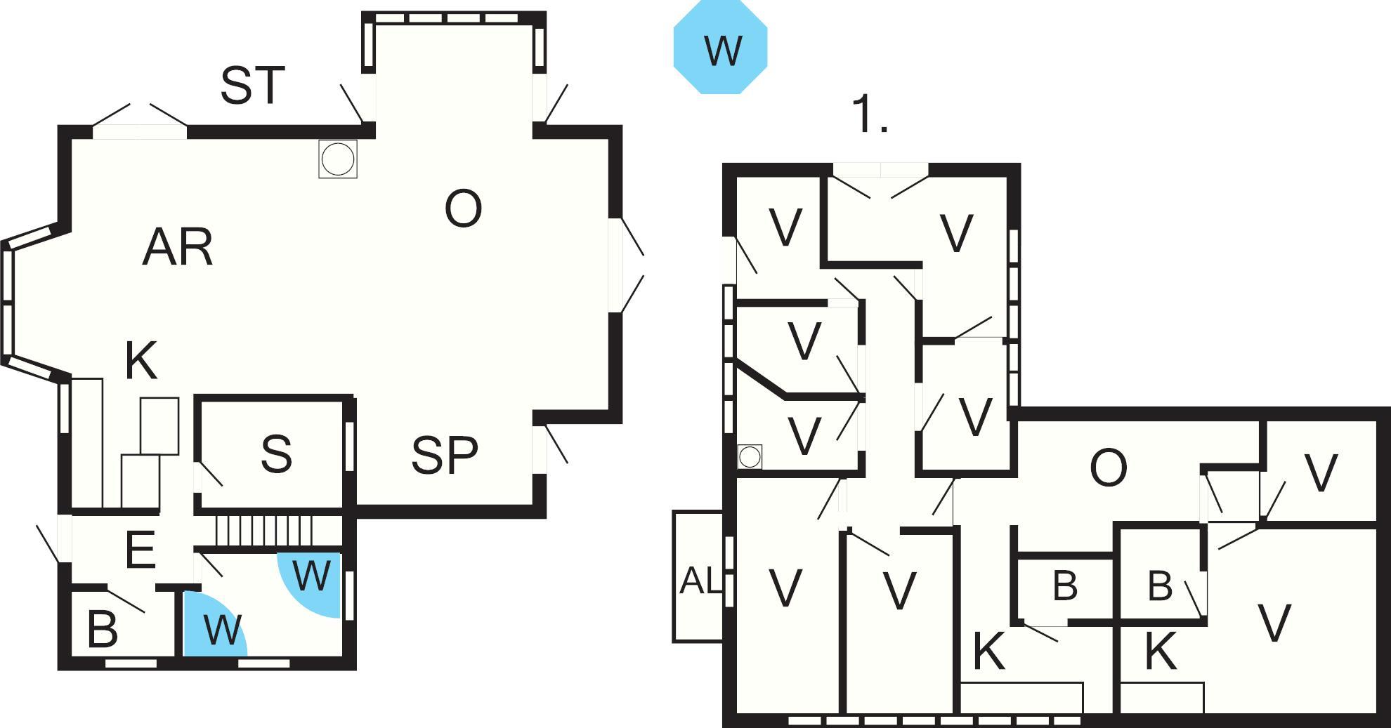 9 Soveværelser: (1DS)+(1DS)+(1DS)+(1DS)+(1DS+2K)+(1DS+2K)+(1DS+2K)+(1DS)+(1DS), barneseng