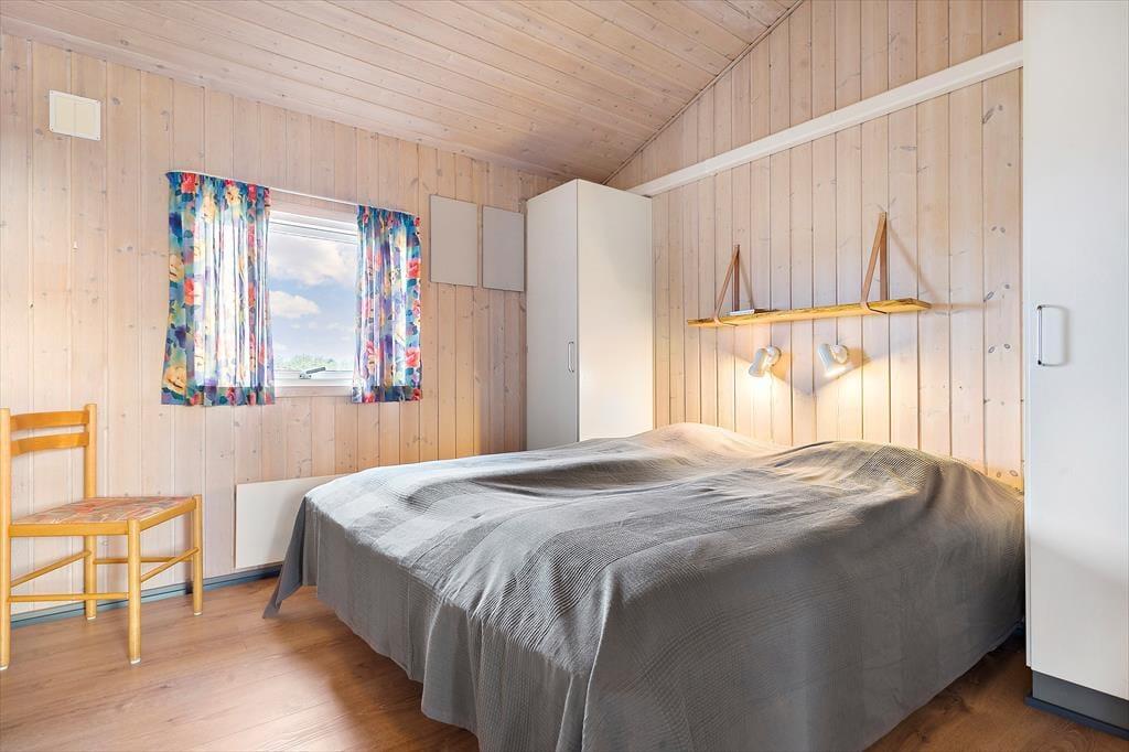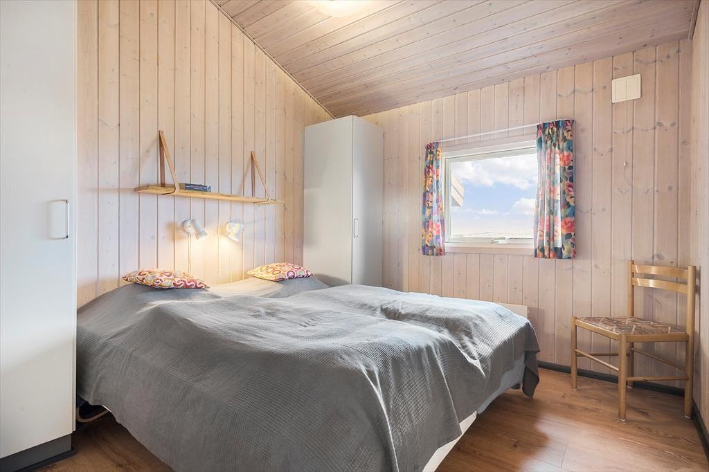 Feriehuset er indrettet med store vinduespartier, som bader det åbne opholdsområde i naturligt lys. Det veludstyrede køkken byder på alt ønskeligt udstyr, og her er god plads til at være sammen om at lave mad, mens opvaskemaskinen gør feriedagenes rengøring let og bekvem. Stuens to sektioner rummer et spisebord ved køkkenet samt en sofasektion med tv, og med både brændeovn og varmepumpe er her altid en behagelig temperatur. Med tre soveværelser har I sengepladser til seks personer, og huset byder også på et separat toilet samt et badeværelse med bruseniche, vaskesøjle, spabad og sauna.