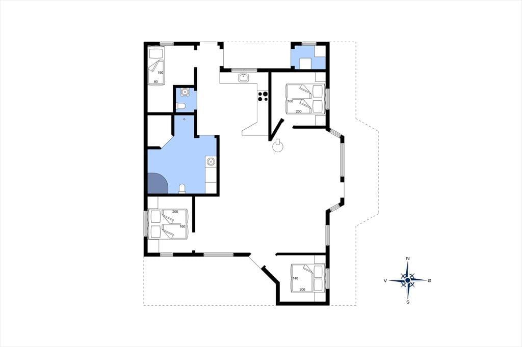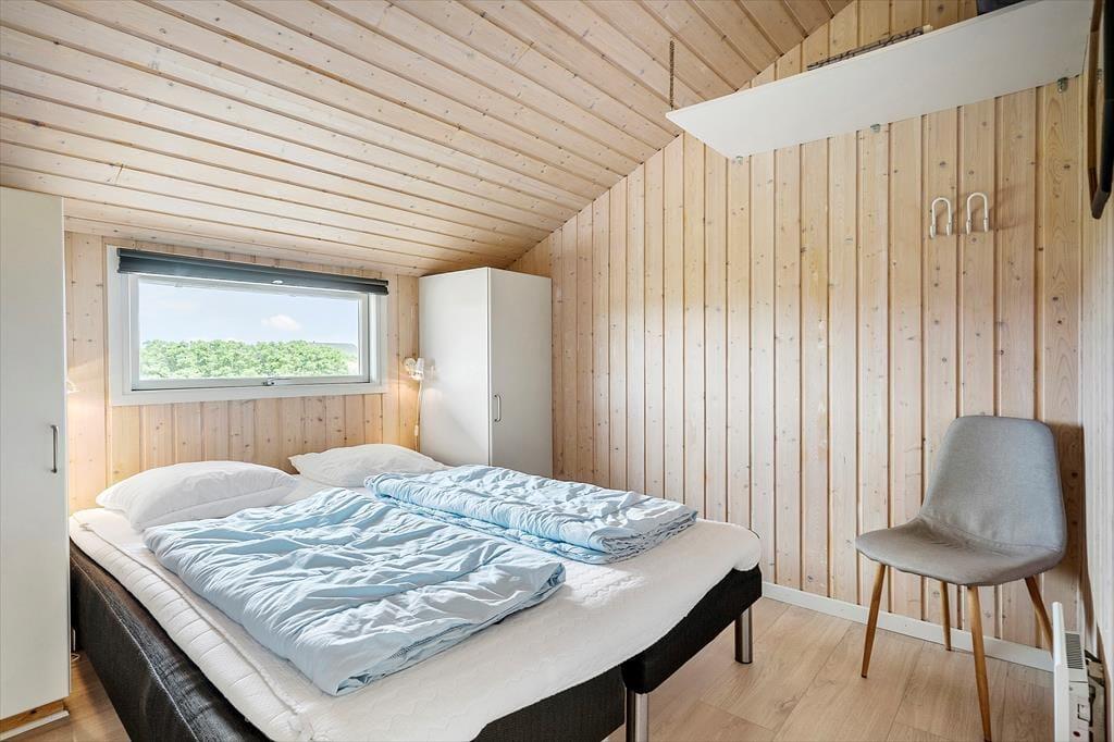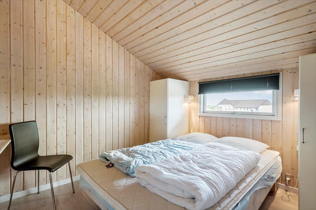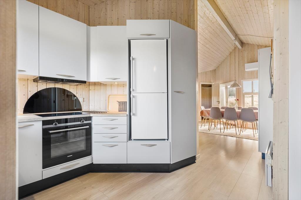 Feriehuset er indrettet med fire gode soveværelser, der har sengepladser til syv personer. Moderne komfort får I masser af i badeværelset, der er indrettet med vaskemaskine, bruseniche, spabad og sauna. Resten af boligen består af et åbent opholdsområde, hvor køkkenet og en stor stue glider i ét. Køkkenet giver plads til at være sammen om madlavning og måltider, og retterne serveres let ved spisebordet i stuen, mens opvaskemaskinen klarer rengøringen. En varmepumpe og en brændeovn sørger for en behagelig atmosfære, og lænestolen og de bløde sofaer er skønne steder at krybe under lune tæpper og se en god film eller læse en spændende bog, mens varm te damper. Som en rar detalje er her også et gæstetoilet samt et skur med en tørretumbler.