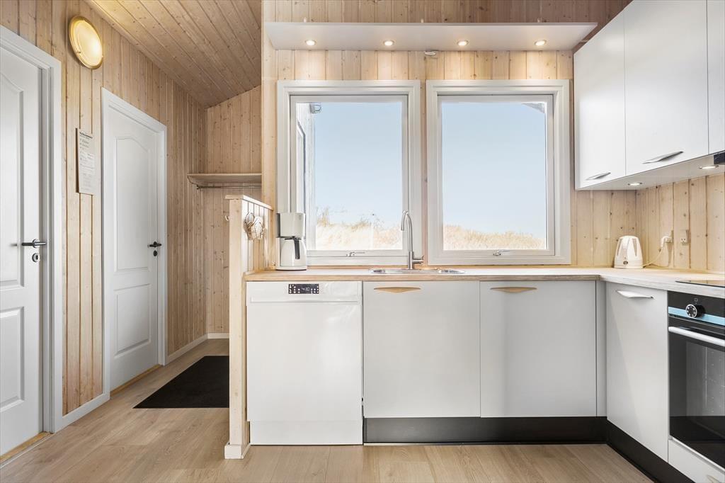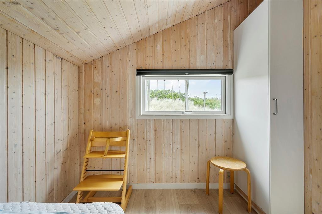 Dette klassiske sommerhus byder på en velfungerende indretning med lyse, luftige rum, og fire soveværelser giver sengepladser til syv personer. Feriehuset ligger i Aargabs klitlandskab midt mellem Ringkøbing Fjord og Vesterhavet, og her har I masser af gode oplevelser i naturen i vente.