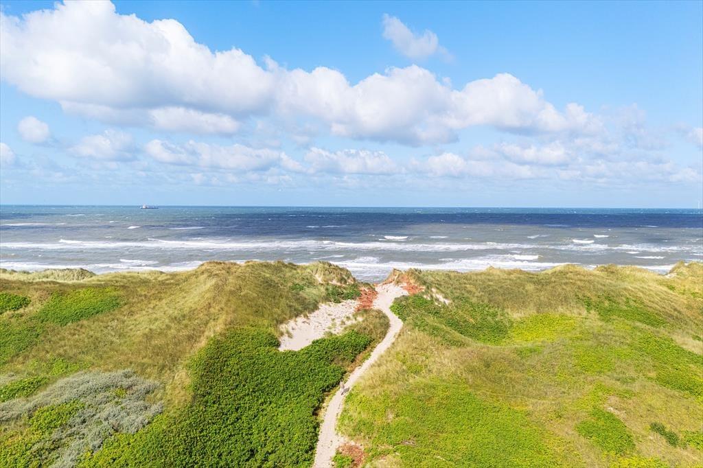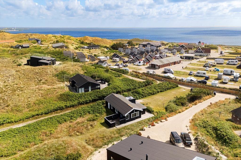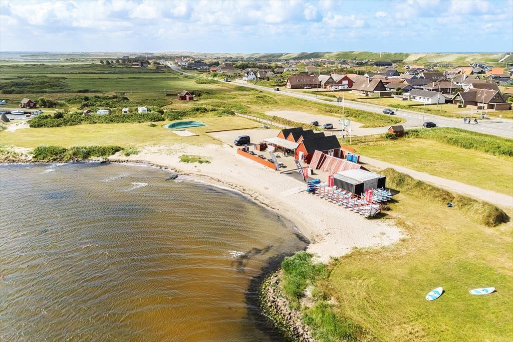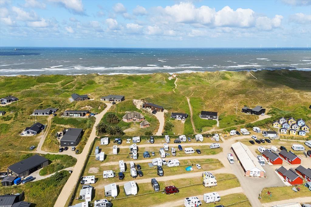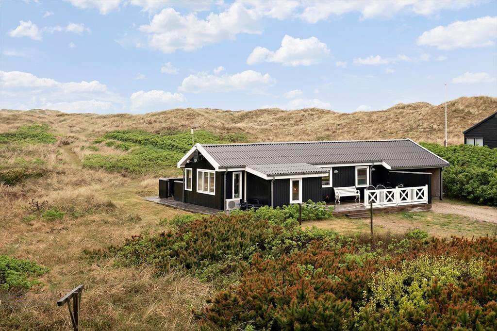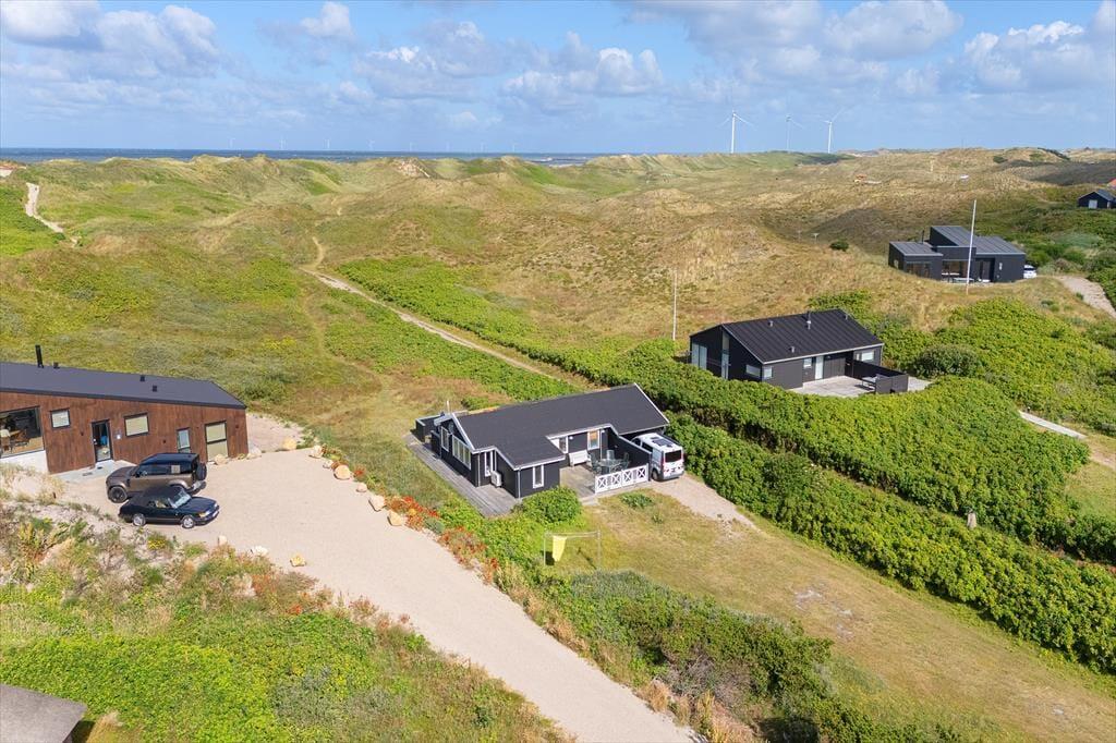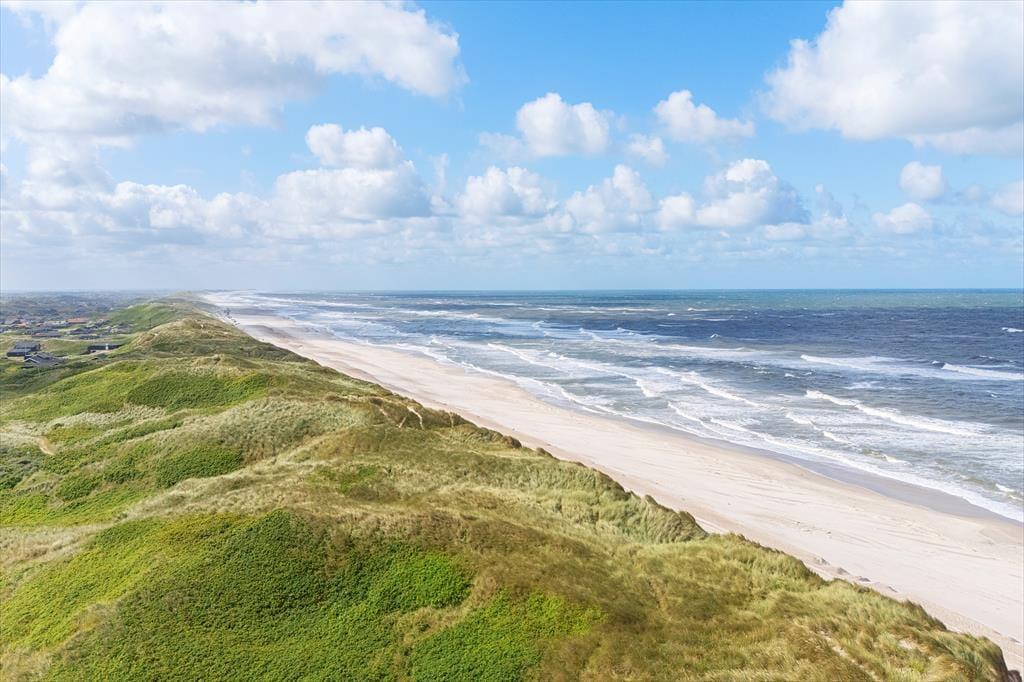 Bølgende marehalm, bløde klitter og duftende hybenbuske omgiver sommerhuset, der ligger godt tilbagetrukket fra den lukkede Karen Brands Vej på en 2994 m2 stor naturgrund. Får I lyst til en dukkert i Vesterhavet eller en gåtur langs med vestkysten, kan I følge en sti fra huset og lige ned på stranden – og begiver I jer mod øst, er der blot få minutters gang til Ringkøbing Fjord. Aargab er kendt som et godt sted at surfe og sejle kajak på fjorden, og der er også et vandsportscenter, som udlejer udstyr og tilbyder undervisning. Fra det rolige sommerhusområde har I nem adgang til Hvide Sandes centrum, så hvis I vil ud at spise, købe ind eller kigge nærmere på byens spændende fiskerihavn, tager køreturen kun få minutter.
