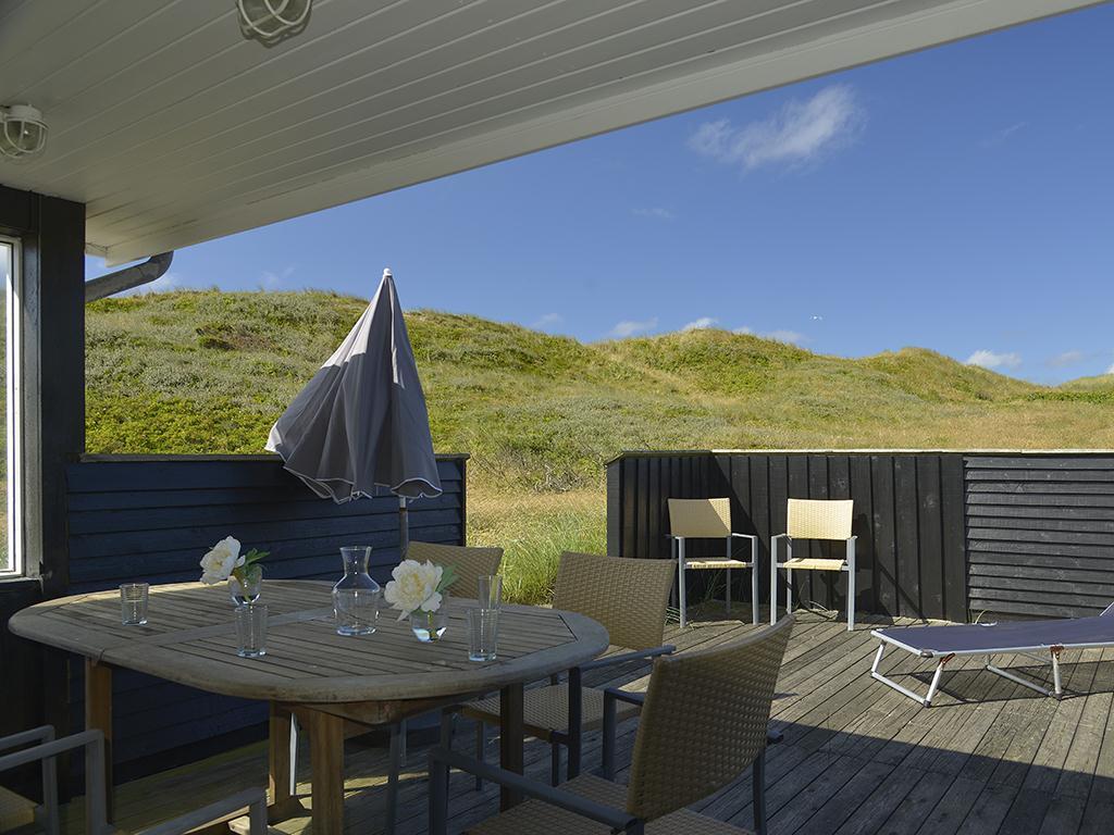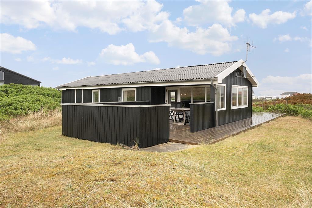 Rundt om sommerhuset breder et fantastisk terrassemiljø sig, og her får I nemt ved at finde den helt rette opholdsplads uanset tidspunktet på dagen. Terrasserne er tilpas afskærmede, så I kan nyde udelivet i ugenerede omgivelser, men stadig få glæde af solen og klitudsigten – og Vesterhavet venter bare 200 meter væk.