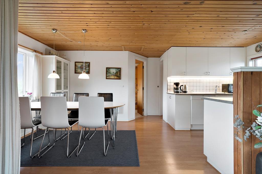På grund af den attraktive beliggenheden behøver I egentlig ikke at bevæge jer udenfor for at nyde naturomgivelserne. Især i stuen er udsigten til klitterne helt betagende, så når I slapper af i sofaen eller laver mad i det åbne køkken, har I noget smukt at kigge ud på. Huset er bygget i 1964, men fremstår samtidig pænt og velordnet, for det er nemlig blevet renoveret med nyt køkken og nye møbler. Ud over opholdsrummet byder planløsningen på et velindrettet badeværelse med bruser, vaskemaskine og gulvvarme, og der er også to soveværelser at gøre godt med, så I fint kan være fem personer i huset.