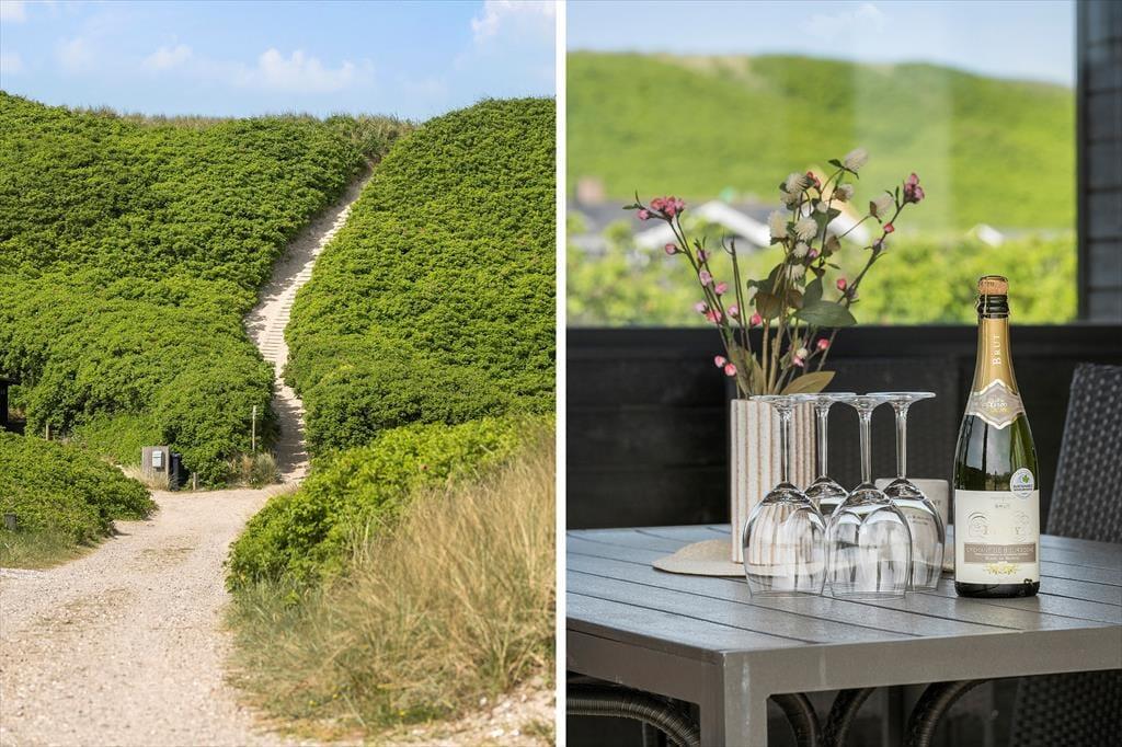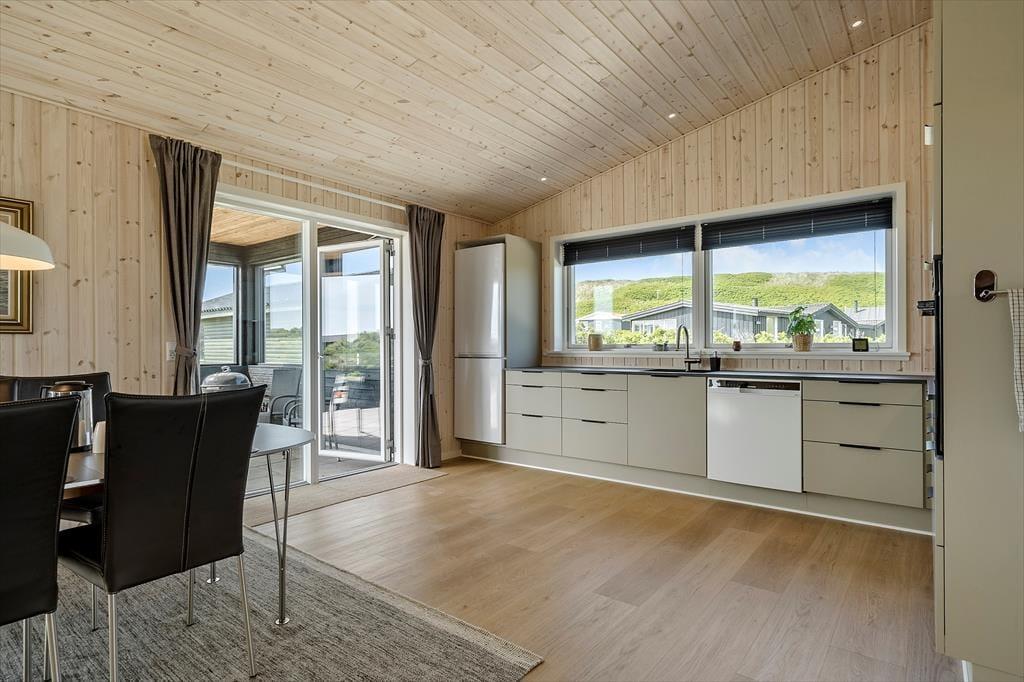200 meter til stranden betyder, at I bare skal over klitrækken, før I står ved Vesterhavets blå bølger. Krydr sommerdagen med en frisk dukkert i det salte vand, eller nyd en frisk gåtur langs de brusende bølger, når naturen viser kræfter i ydersæsonerne. Feriehuset ligger i Aargab mellem Vesterhavet og Ringkøbing Fjord, og den kuperede, vestjyske klithede inviterer til lange gåture eller udflugter på cyklen. Familiens yngste har masser af plads og muligheder for at udforske omgivelserne, og det er oplagt at sætte en drage op fra en af områdets klitter. Har I surfgrej eller fiskestænger med, kan I nemt bruge dagene ved eller på vandet, for området har mange fiskesøer samt fiskepladser ved Afvandingsslusen i Hvide Sande, og der er surfspots ved både fjord og hav. I Hvide Sande fem minutters kørsel fra adressen summer gaderne af liv mellem de mange butikker og gode spisesteder, og her finder I også flere gode supermarkeder.