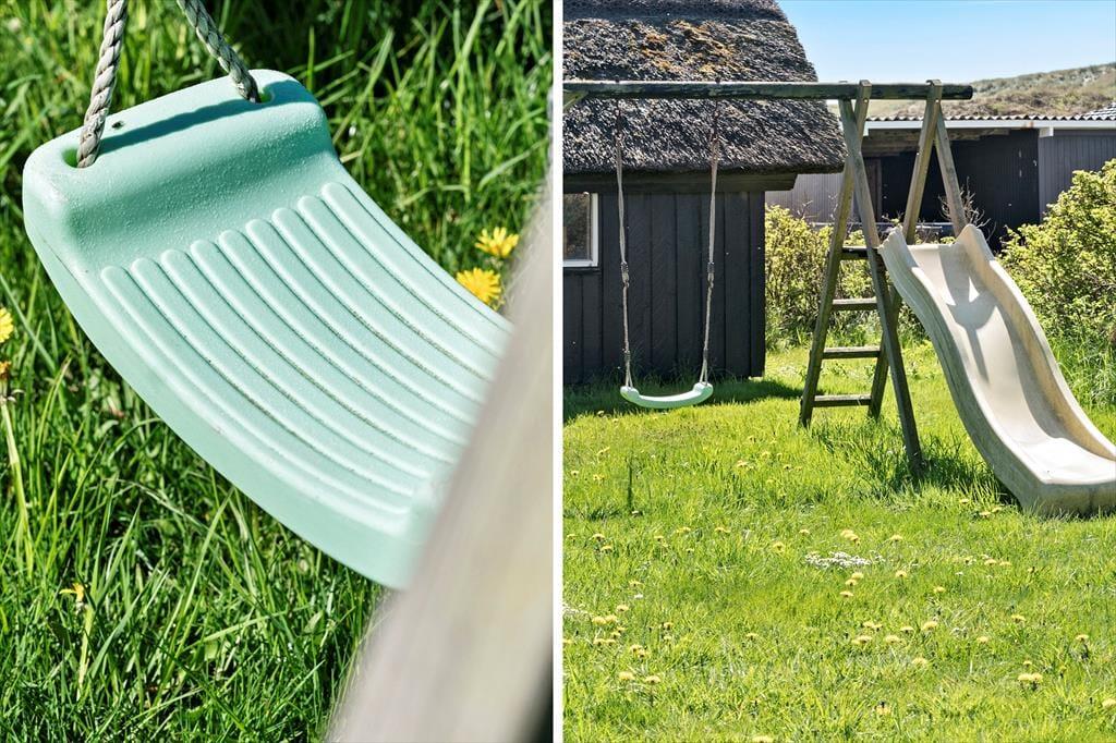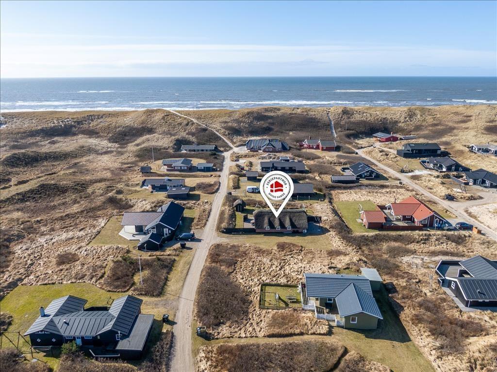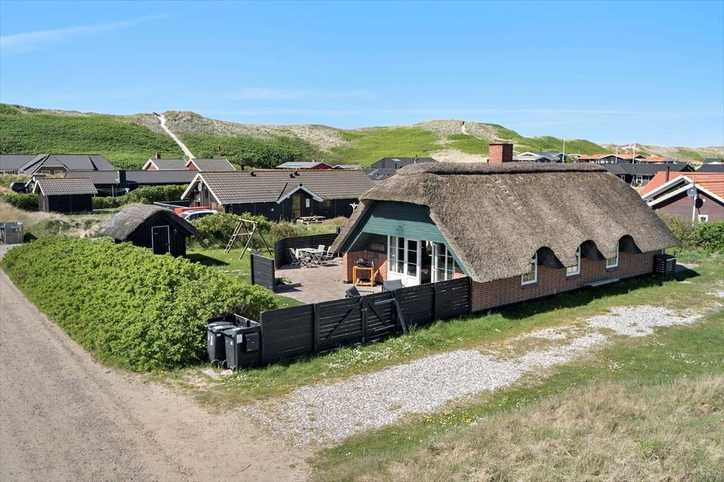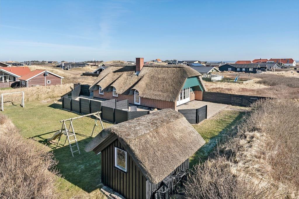 Dette stråtækte feriehus har sengepladser til seks personer, og med gynge og plads til boldspil er feriehuset oplagt til børnefamilier. Samtidig har I få skridt til Vesterhavet og er omgivet af Aargabs smukke natur og Ringkøbing Fjord.