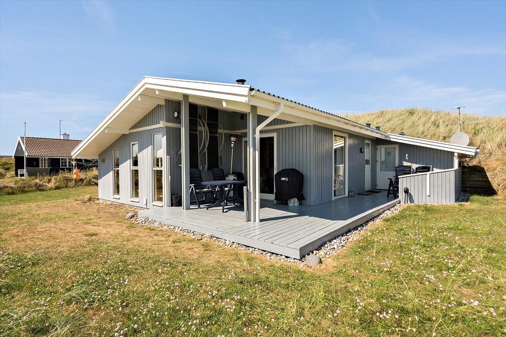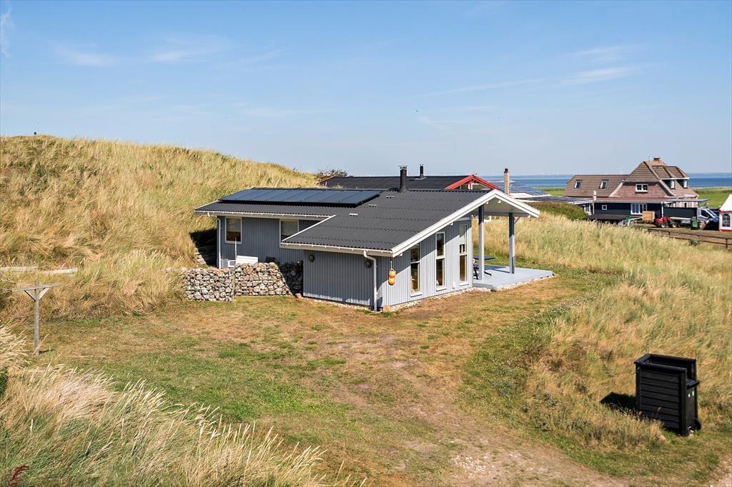 Ihr 1.323 m² großes Dünengrundstück besticht mit einer fantastischen Panoramaaussicht auf die flache Landschaft am Ufer des Ringkøbing Fjords. Sie werden hier schönste Sonnenaufgänge über dem Wasser erleben - beispielsweise auf der gen Osten weisenden Terrasse in Kombination mit einem guten Becher Kaffee. Südlich des Hauses erstreckt sich ein überdachtes Terrassenareal und gen Westen befindet sich ein Aufenthaltsbereich der durch die Dünen und die Umrandung gut vor Wind geschützt ist.