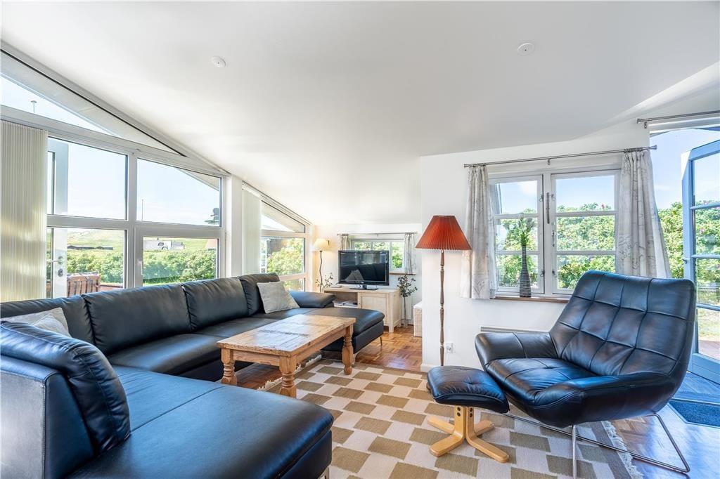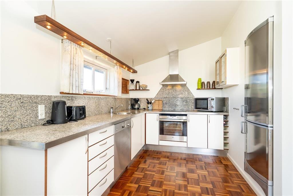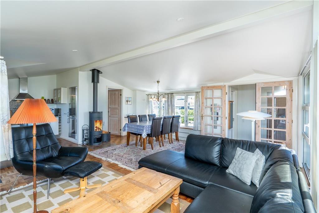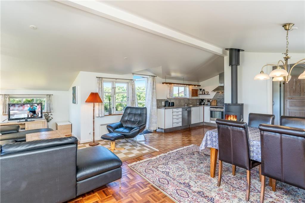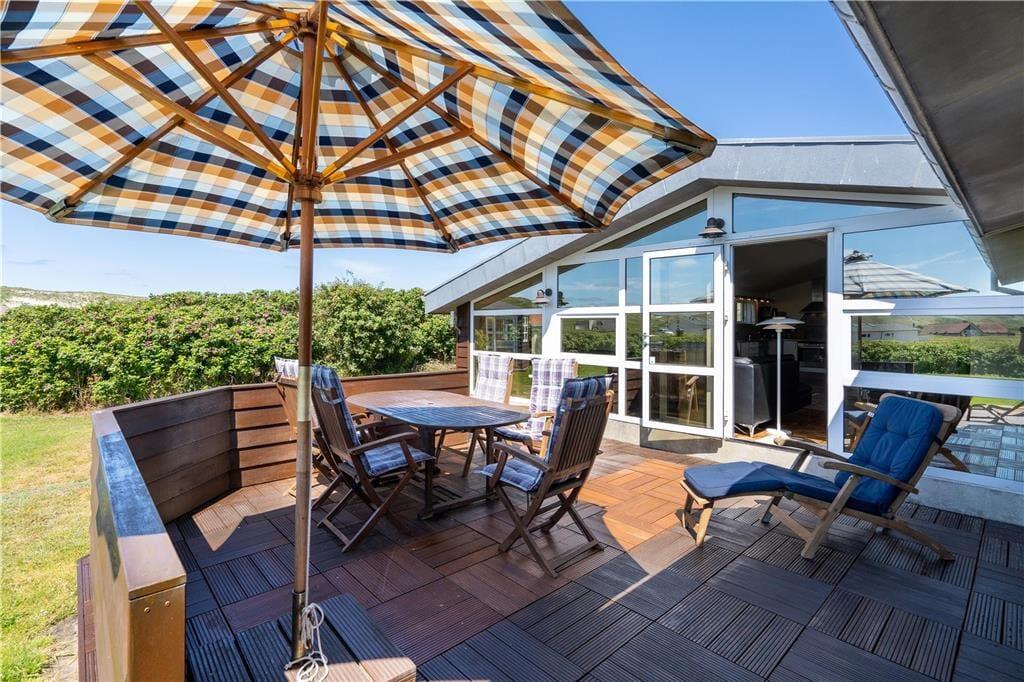 De udendørs rammer er pæne og velordnede som selve huset, og når vejret er sommerligt, er det oplagt at bruge det mest af tiden ude i det fri. Rundt om huset har I flere terrasser og solkroge at vælge imellem, så I kan lige tage bestik af solens placering på himlen, inden I slår jer ned i en havestol. Havens lille lysthus er også et hyggeligt sted at slappe af, og på græsplænen kan I spille havespil og boltre jer i læ af hybenbuskene. Et lille anneks kan aflåses, så her kan I trygt opbevare cykler, fiskegrej eller surf udstyr.