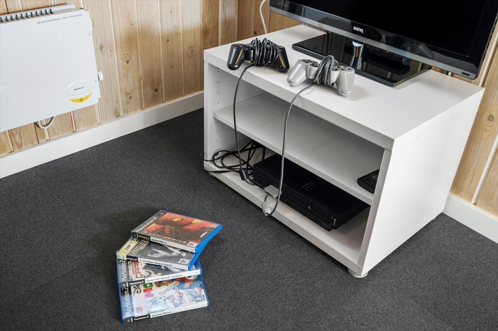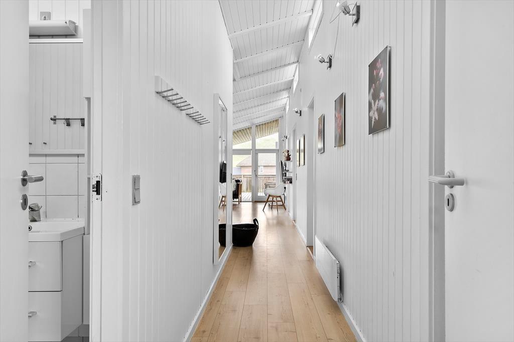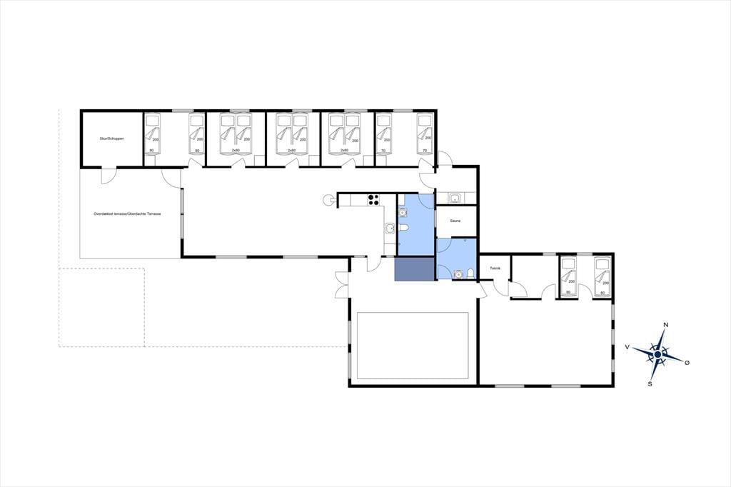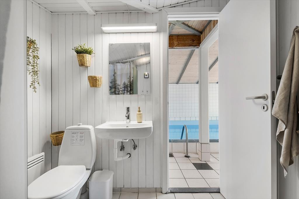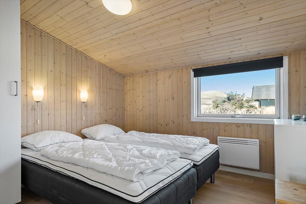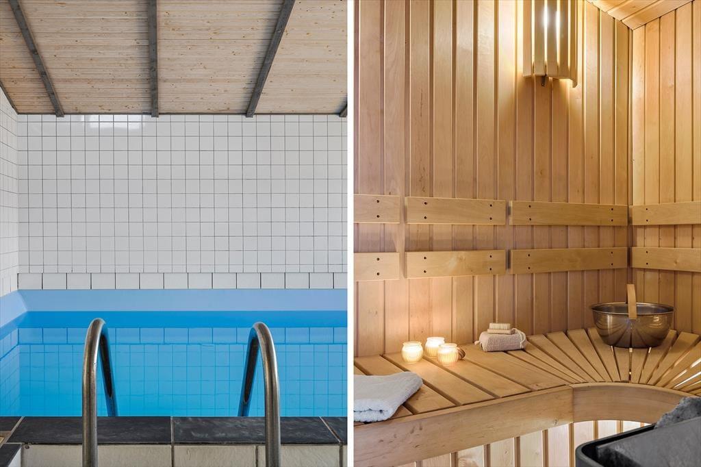 Med en velformet planløsning, der blandt andet byder på seks soveværelser og to badeværelser, får I en skøn ramme om ferielivet inden døre. Det ene badeværelse ligger ved poolafdelingen, hvor I kan koble af i spabadet eller svømme i den 21 m2 store swimmingpool med svømmetræner – og der er for øvrigt også en stor sauna, der kan give jer fornemmelsen af totalt velvære, når I vender hjem fra en blæsevejrsgåtur langs med Vesterhavet. I det store aktivitetsrum kan I lave turneringer i bordtennis, dart, bordfodbold og billard, mens stuen med brændeovn, fladskærms-tv og integreret køkken er det helt rette sted at samles til gode måltider, brætspil og hyggesnak.