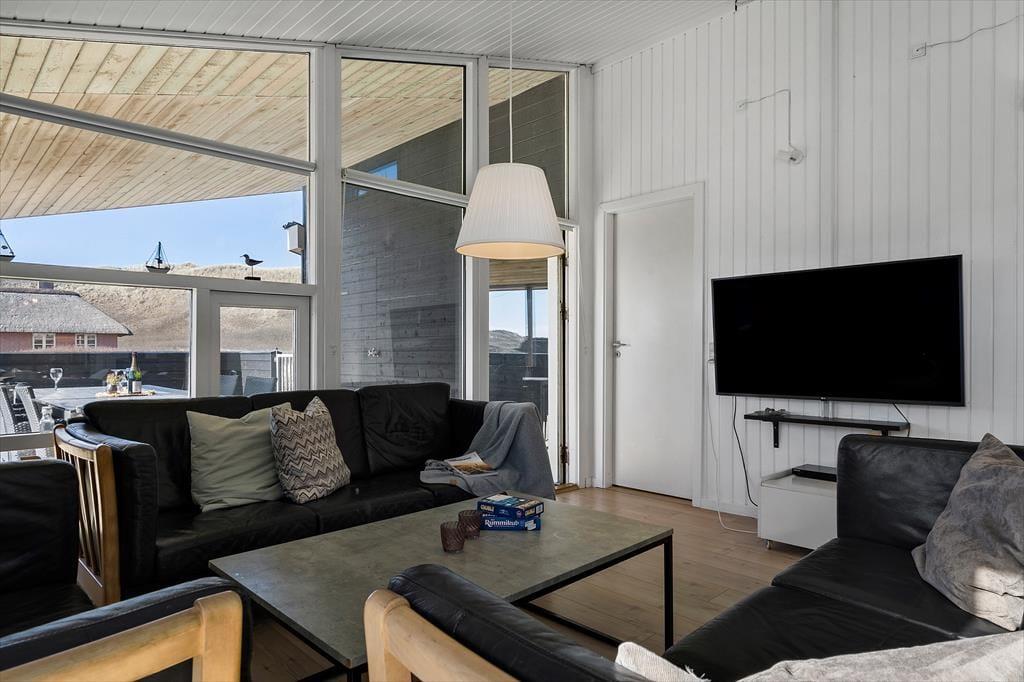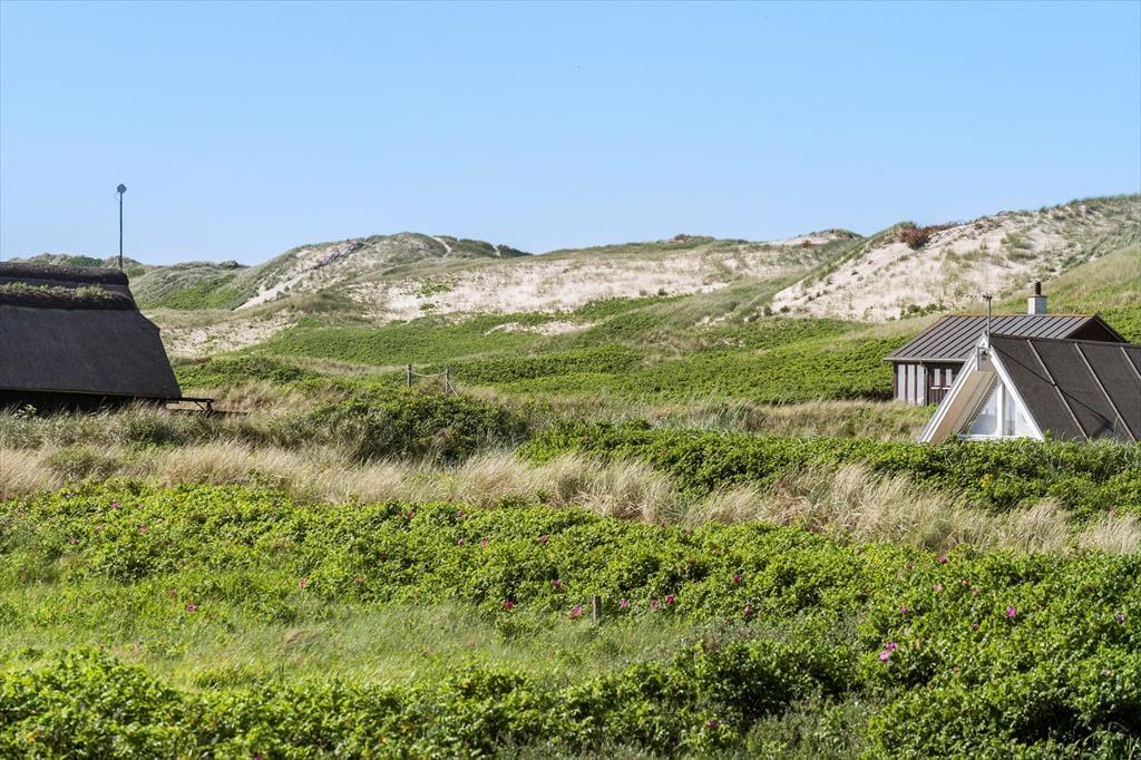 Fra stuen og terrassen kan I nyde den flotte udsigt til Aargabs yderste klitrække – og det er samtidig en dejlig påmindelse om, hvor tæt I befinder jer på stranden. Det tager ikke mange minutter, før I kan stå på klittoppen og kigge lige ud på Vesterhavet, hvorefter I kan fortsætte videre ned for at dyppe jer i bølgerne, bygge sandslotte eller flyve med drage. Holmsland Klit er så smal en landtange, at I samtidig har kort afstand til Ringkøbing Fjord, og det særlige landskab giver jer et helt fantastisk udgangspunkt, hvis I vil fylde feriedagene med lystfiskeri, windsurfing, SUP eller andre former for vandaktiviteter. Cykelture og vandring er også populært på egnen, og takket være den korte afstand til Hvide Sande kan I hurtigt være inde ved bymidten, hvis I vil afslutte dagen med et lækkert restaurantbesøg eller en stor is ved havnen.