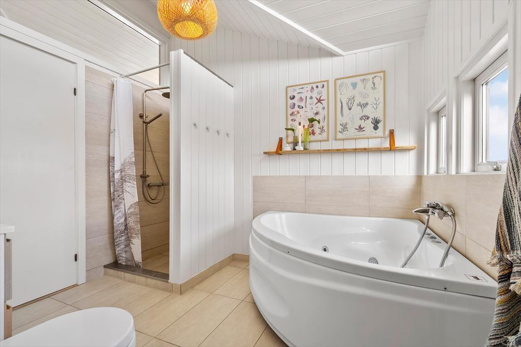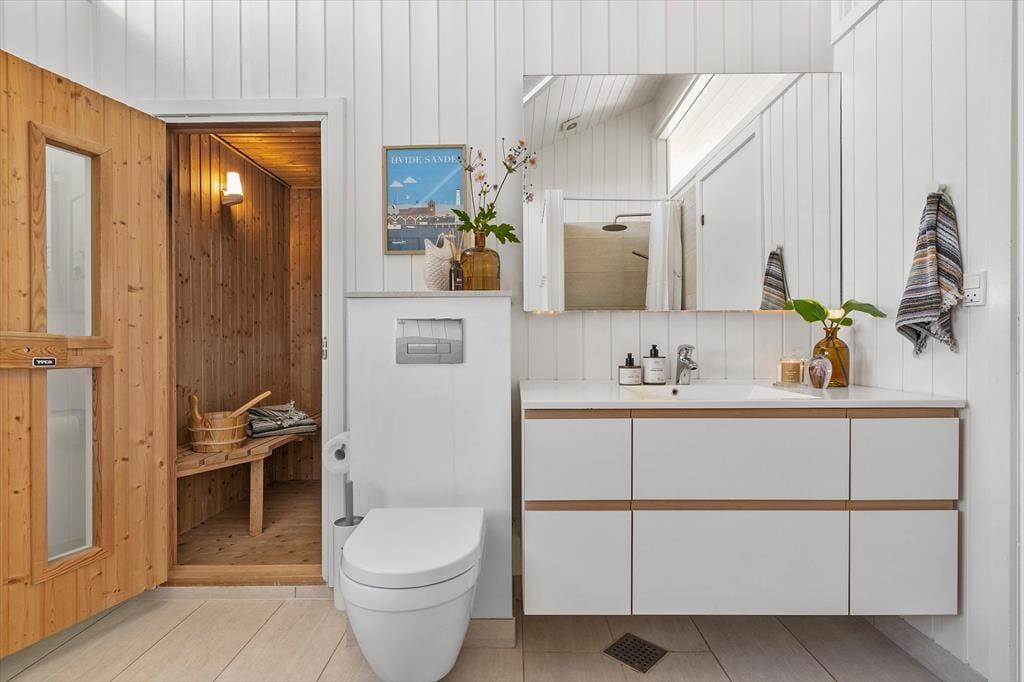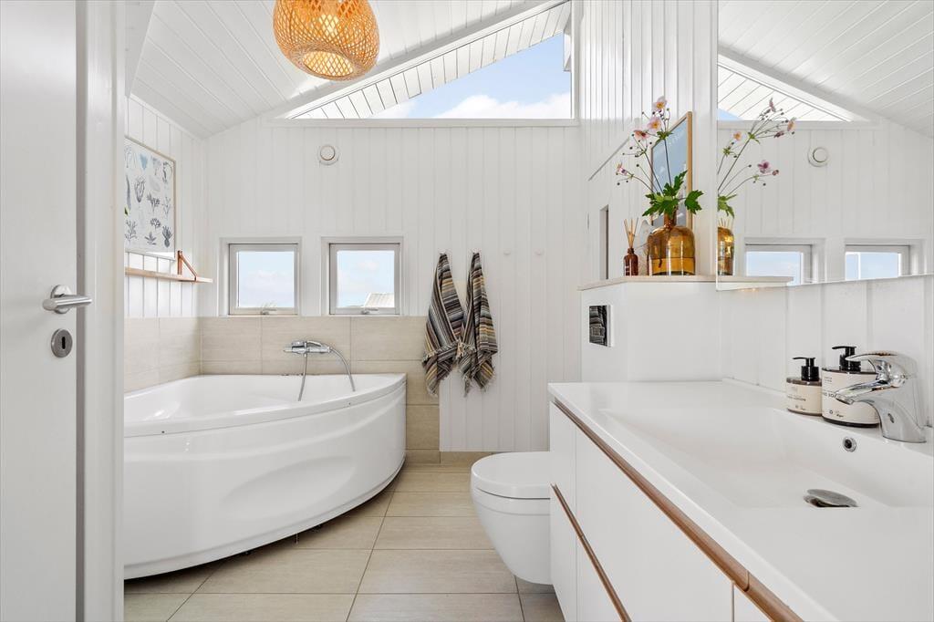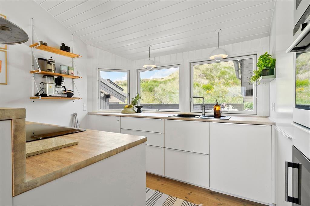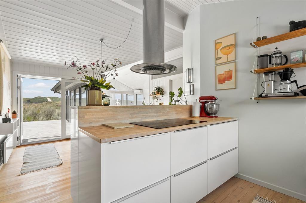 Huset ligger smukt placeret i klitterne, så naturen føles tæt på, selv når du sidder afslappet i den stilfulde stue eller hygger dig i det åbne køkken med at bage boller og lave aftensmad. Du vil sikkert også kunne mærke, at lyset er noget særligt, når du befinder dig så tæt på kysten, og gennem husets store stuevinduer får solen rig mulighed for at kigge indenfor. Også indretningen er lys – ikke kun i opholdsafdelingen, men også på de tre gode soveværelser såvel som på gæstetoilettet og badeværelset. På sidstnævnte er der for øvrigt både spabad og sauna, så ferien kan udvikle sig til et rigtigt wellnessophold, hvis det er det, du har lyst til.