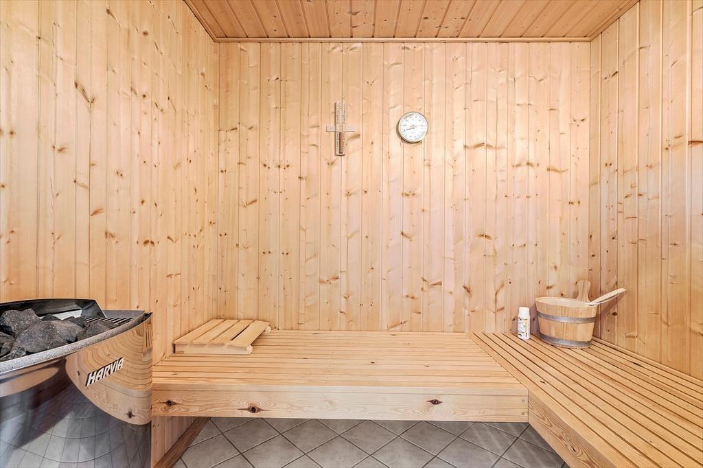 Det 115 m2 store sommerhus har ligget på denne attraktive adresse siden år 2000. Siden er der sket en del inden døre, for huset blev nemlig renoveret i 2019, så I kan se frem til at nyde livet i lyse og velfungerende omgivelser. Madlavningen kommer til at foregå i et veludstyret, moderne køkken, og det ligger i åben forbindelse med opholdsafdelingen, så det er muligt at kokkerere og hyggesnakke med familien på samme tid. Opholdsafdelingen er opdelt i to niveauer, og øverst er der spisebord og sofakrog, mens nederste niveau er indrettet som opholdsstue med komfortable siddemøbler, brændeovn og fladskærms-tv med parabol og Chromecast. Sommerhusets tre soveværelser har alle en fornuftig størrelse, og badeværelset er både rummeligt og lækkert. Her er der ikke bare bruseniche og gulvvarme, men også en sauna, som er stor nok til, at man kan ligge og dase på saunabænken.