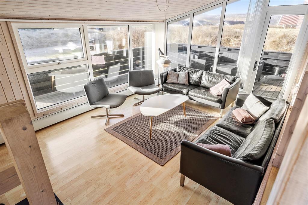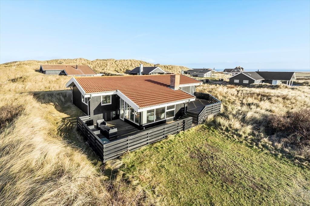 Hvis I holder af at slappe af nær vand og åbne vidder, skal I helt sikkert se nærmere på dette skønne sommerhus i Aargab på Holmsland Klit. Det ligger nemlig i det smukke klitlandskab mellem Vesterhavet og Ringkøbing Fjord, og netop fjorden har I udsigt til fra både huset og terrassen.