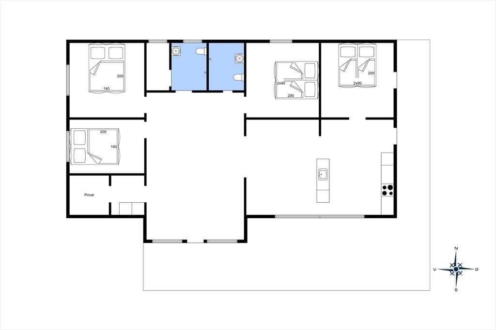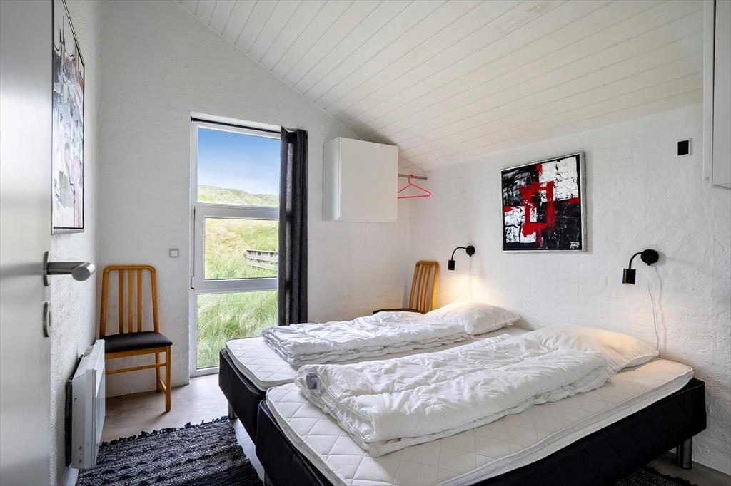 Inden døre får I 130 m2 at brede jer på, og de mange kvadratmeter er godt udnyttet, så I nemt og bekvemt kan være otte personer. Fire soveværelser er ligeligt fordelt i begge ender af sommerhuset, og med to badeværelser slipper I for at stå i kø for at få et morgenbrusebad. Fra det ene badeværelse har I endda adgang til en sauna, og hvis I trænger til afslapning og selvomsorg, er det perfekt med en tilbagelænet pause i varmen. De sociale hyggestunder kan oplagt foregå i opholdsafdelingen, hvor køkken-alrum og stue er forbundet. Vinduerne giver jer udsigt til det flotte klitlandskab og sørger for et fint lysindfald i løbet af dagen, og om aftenen kan I skrue op for hyggestemningen ved at tænde op i brændeovnen og sætte en god film på fladskærmen. Stuen byder for øvrigt på både bordfodbold og dart, så både børn og voksne kan se frem til mange timers sjov og underholdning.