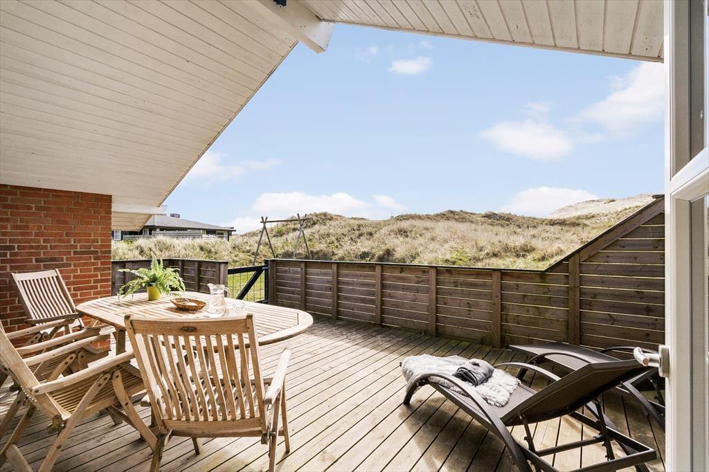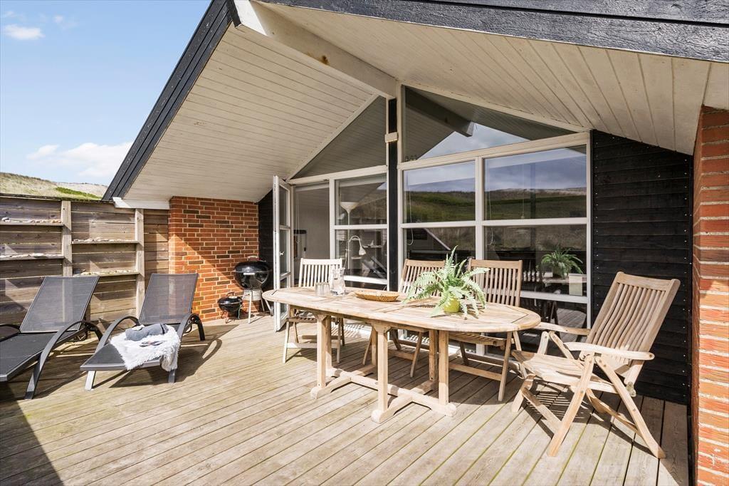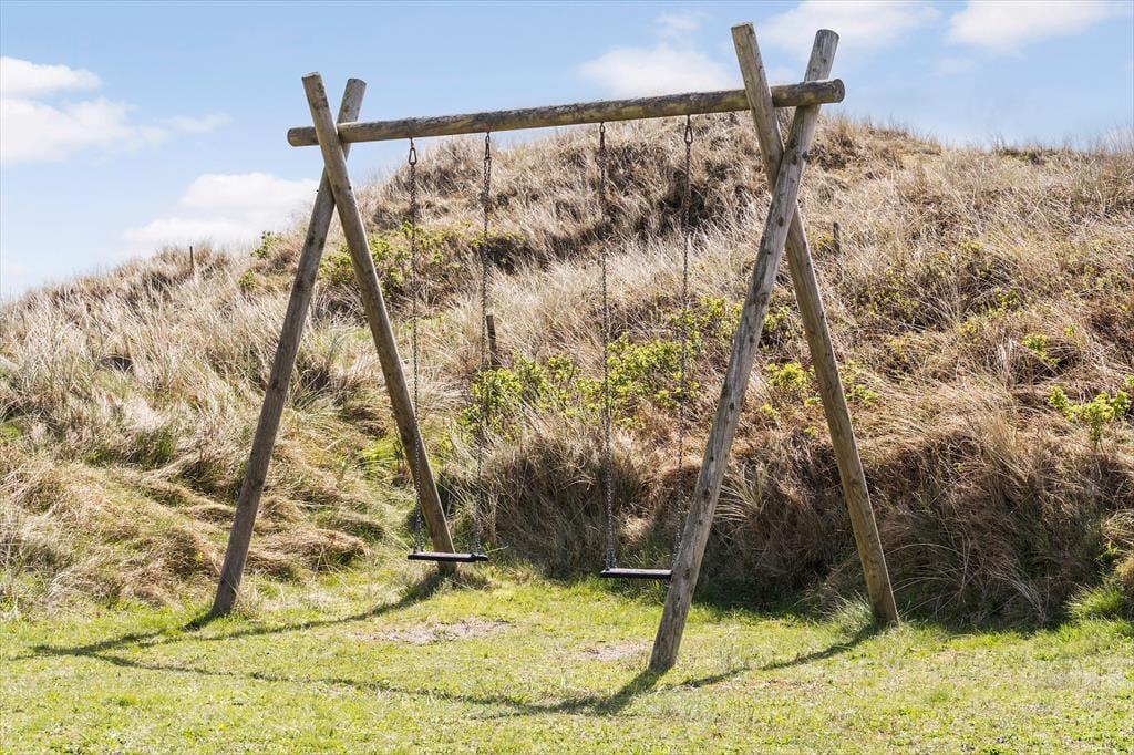 Ude i det fri kan børnene gynge og boltre sig på naturgrunden, der grænser lige op mod de høje klitter. Indbyder vejret til at spise frokost under åben himmel, kan I dække op i solen på det store terrassemiljø, der breder sig mod øst og syd. En mindre del af terrassen er overdækket, og hegn og havelåger lukker opholdsmiljøet helt af, hvilket småbørnsforældre og hundeejere sikkert kan blive glade for. Ved huset er der mulighed for at oplade elbilen, hvis I blot medbringer et kabel.