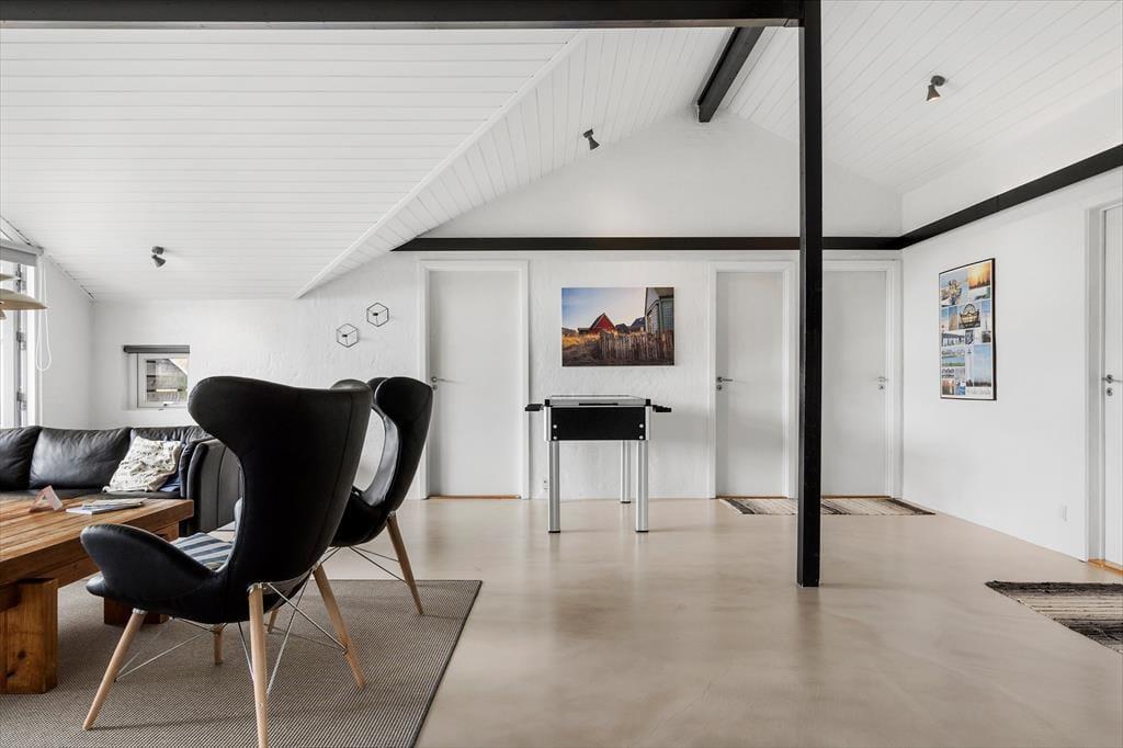 Er I på udkig efter et stort sommerhus med underholdning til børnene, dejlige udearealer og sengepladser til mange mennesker? Så skal I se nærmere på dette rummelige aktivitetshus, der ligger lige ud til den høje klitrække, der markerer overgangen til Aargab Strand.