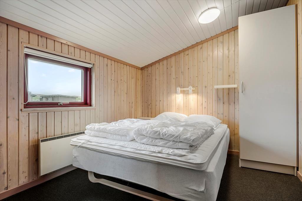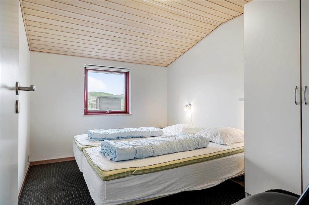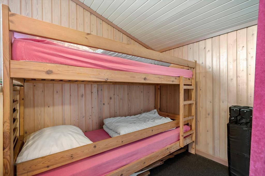 I det ene soveværelse er der et ekstra rum med en køjeseng. Rummene er kun adskilt med et forhæng.
