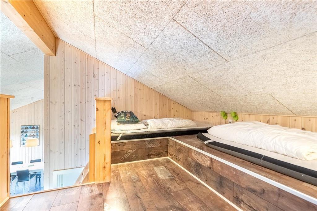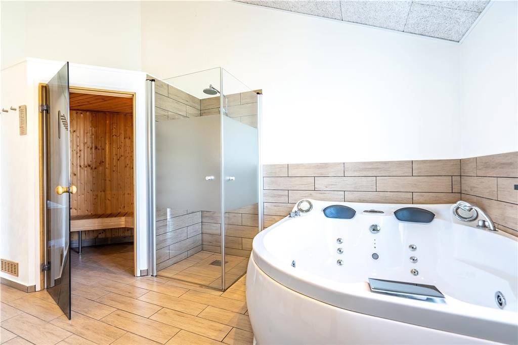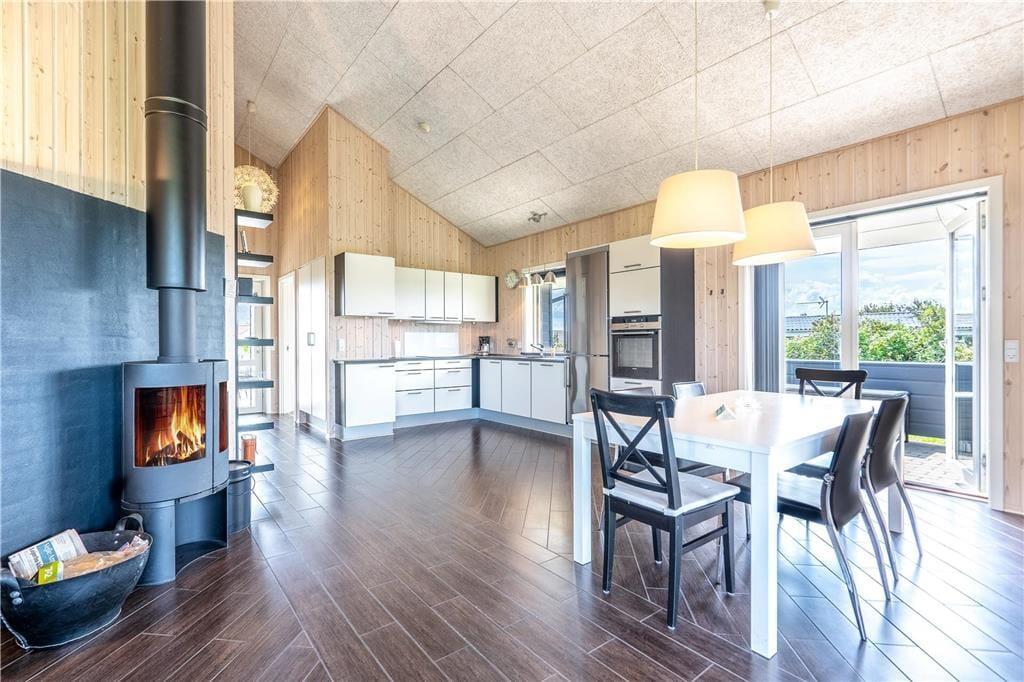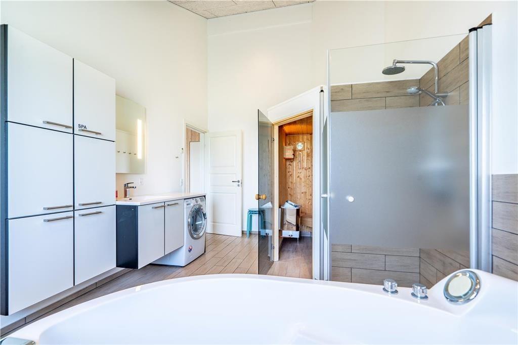 Blot et hurtigt blik på den velordnede facade og de velindrettede rum vil afsløre, at der er styr på sagerne her i sommerhuset. Også knap så synlige detaljer bidrager til helhedsindtrykket, for der er eksempelvis jordvarme, som er med til at holde energiforbruget i bund. I alle rum er der gulvvarme, og i stuen står en brændeovn, som kan skrue lidt ekstra op for hyggestemningen, når I sidder samlet rundt om spisebordet til et lækkert aftensmåltid. Maden kan I trylle frem i det veludstyrede køkken, der er en integreret del af stuen – og her er der selvfølgelig opvaskemaskine, der gør det let at rydde af. I stedet kan I bruge tiden på at slappe af i sofaen, eller hvad med et spabad og en tur i sauna som en perfekt afslutning på feriedagen? I sommerhuset er der to flotte badeværelser, og med tre soveværelser og en god hems har I sovepladser til seks voksne og to børn.