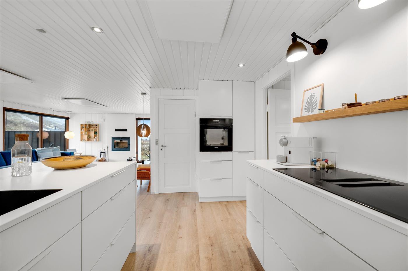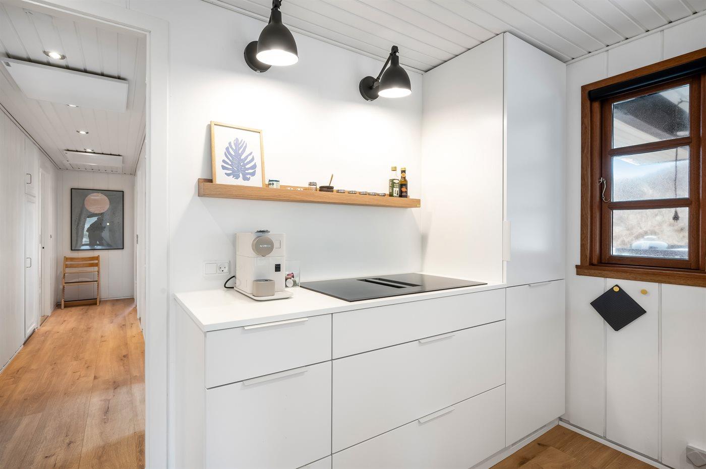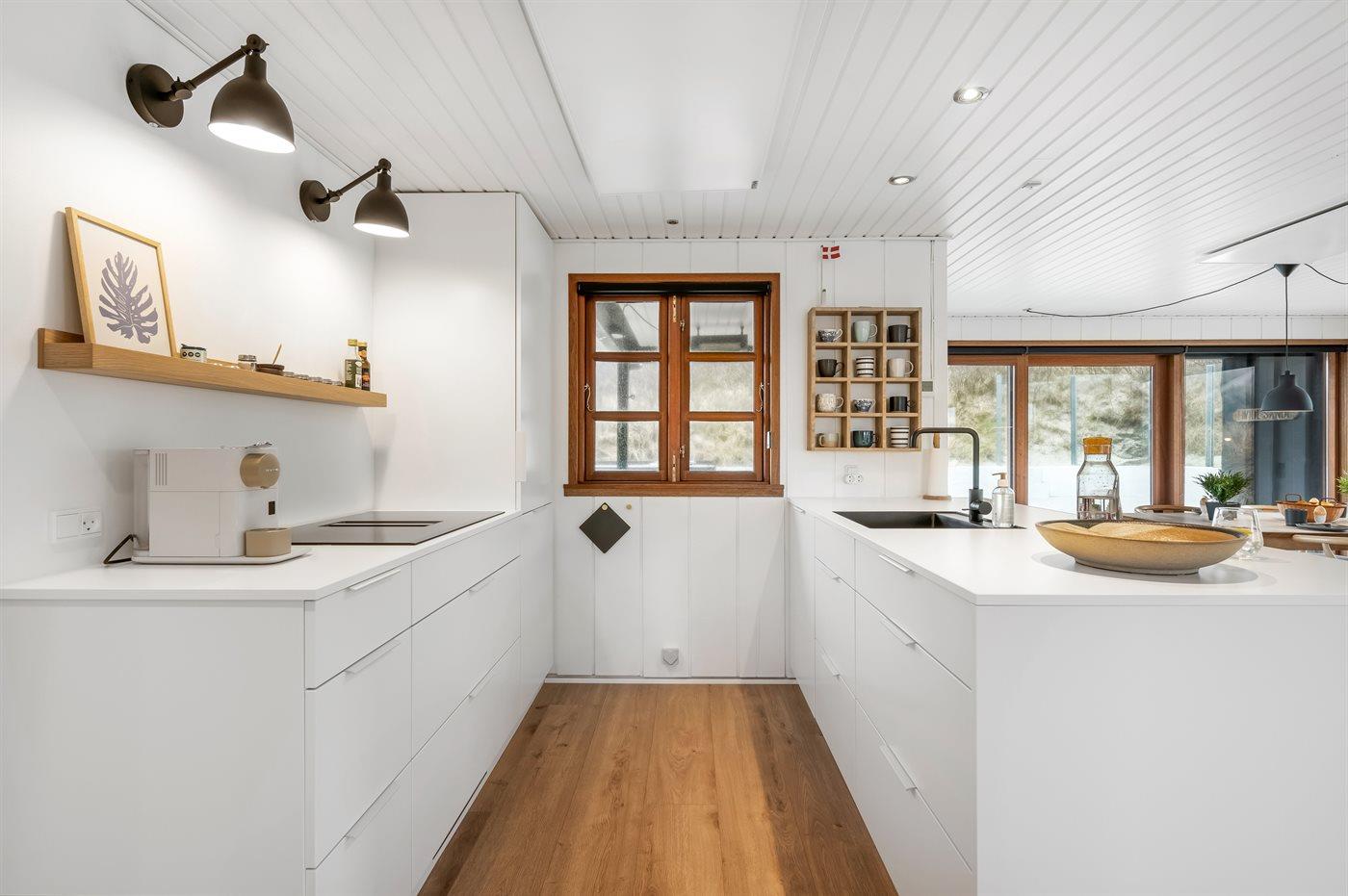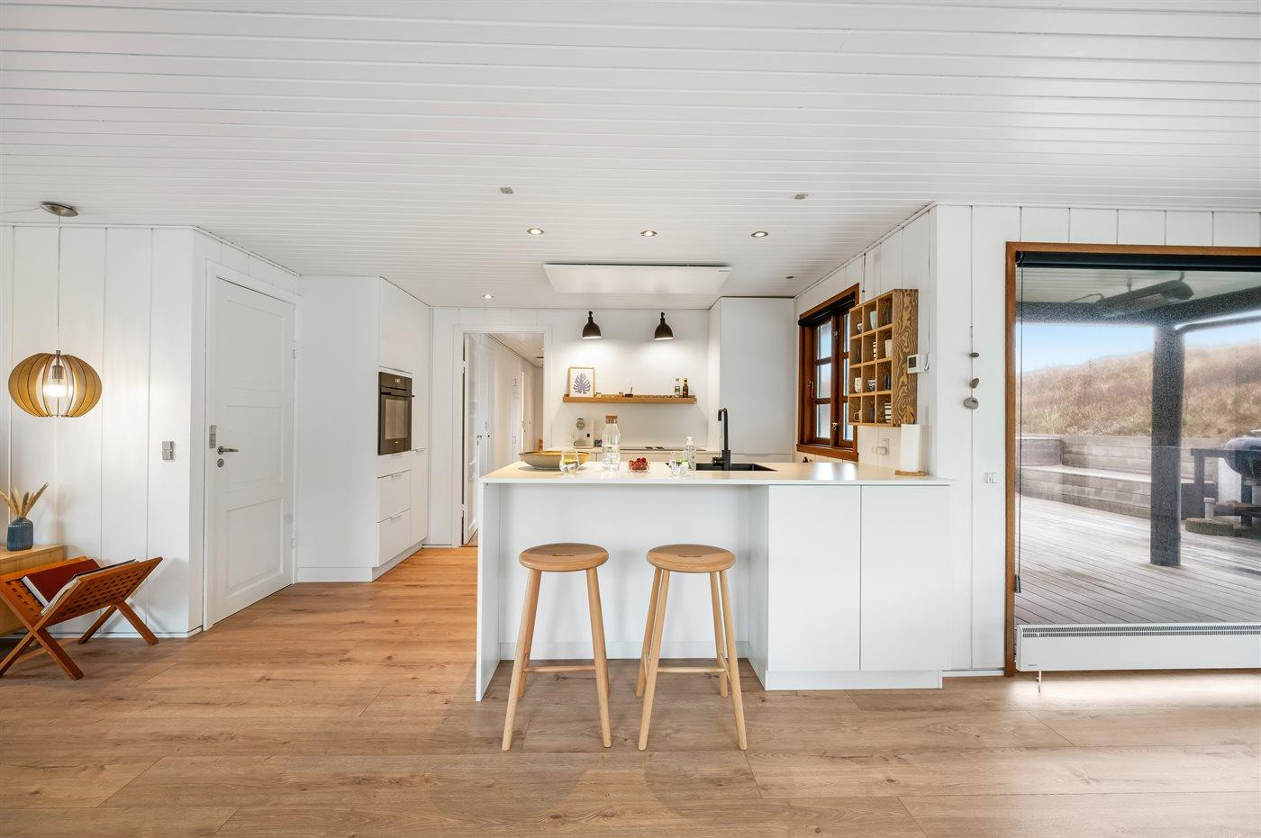 Hvis du vil prøve at lave mad i det fri, kan det også lade sig gøre. På terrassen står også et glimrende udekøkken, hvor du kan kokkere med midt i den friske luft.