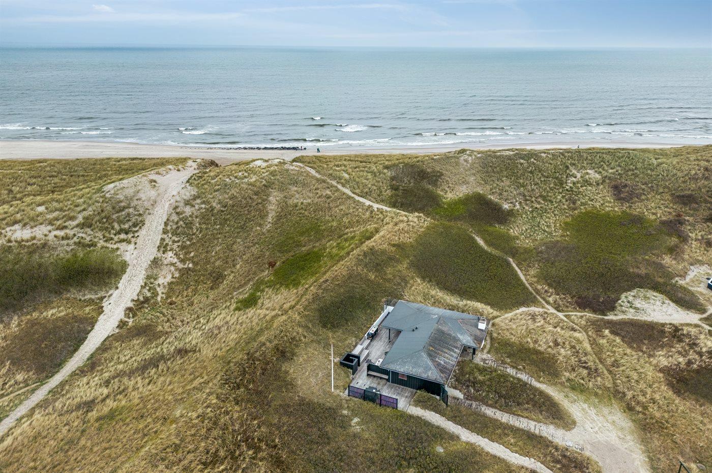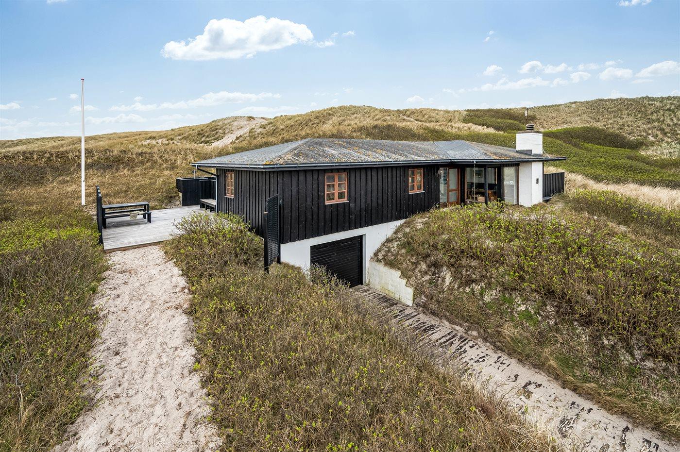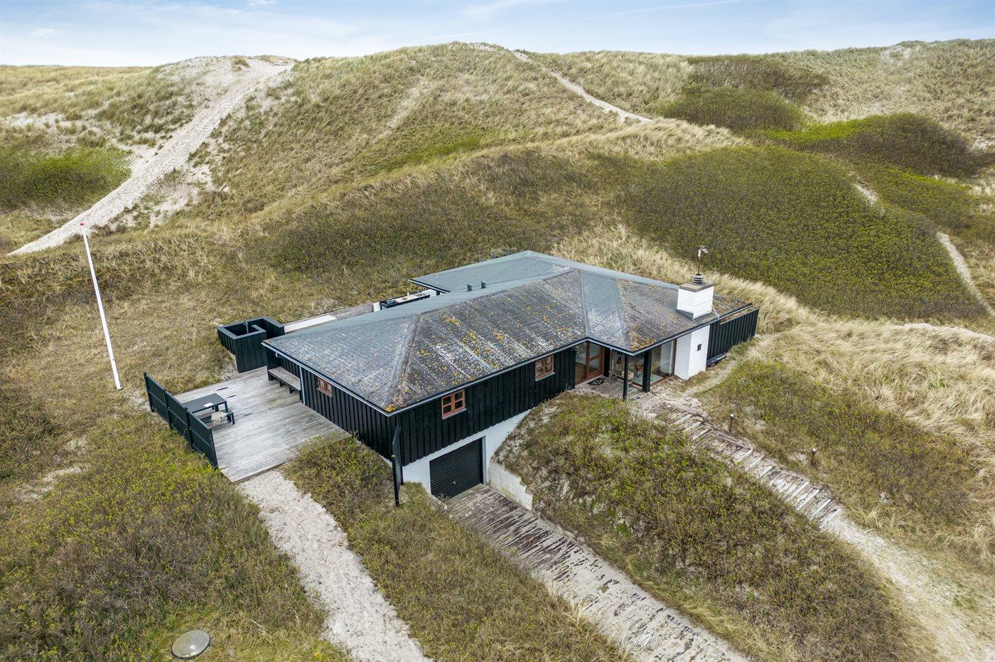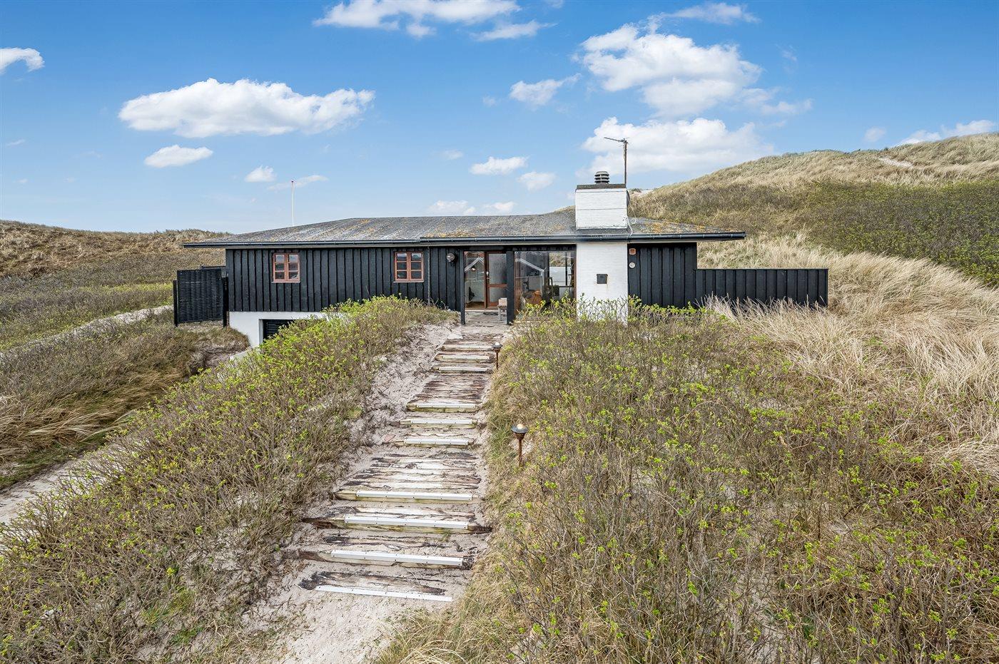 Huset er på 106 kvadratmeter og blev bygget i 1977. Siden har det gennemgået en større renovering. Huset ligger smukt og lidt for sig selv på en 8000 m2 stor klitgrund, kun 50 m fra Vesterhavet og 100 m fra Ringkøbing Fjord. Den nærmeste dagligvarebutik ligger 2000 m væk i den hyggelige havneby Hvide Sande. Her kan du shoppe, spise lækker mad, købe friske fisk, og opleve på det pulserende liv på havnen.