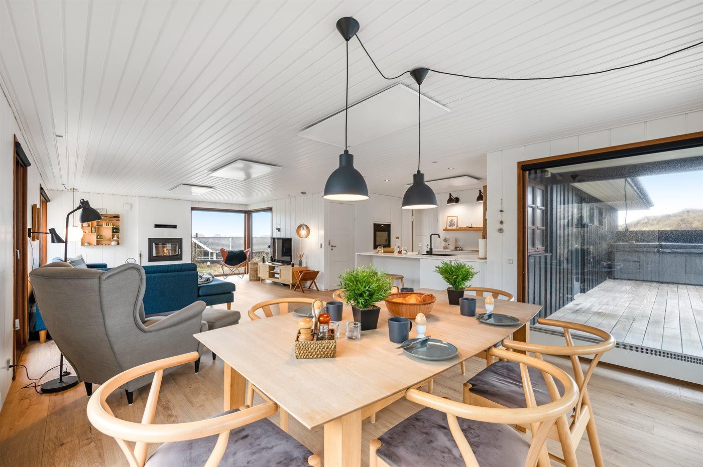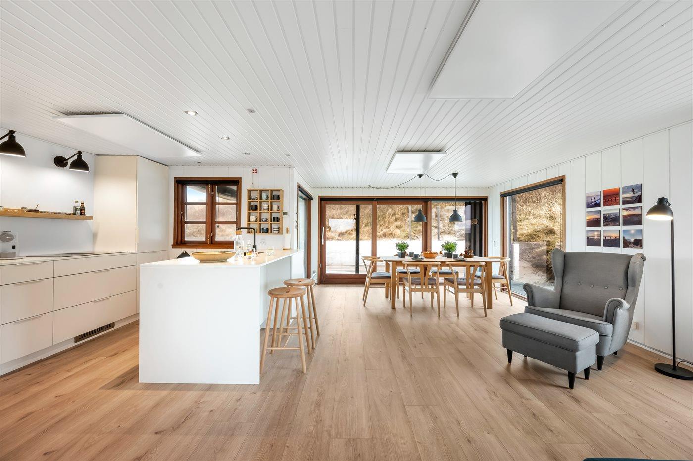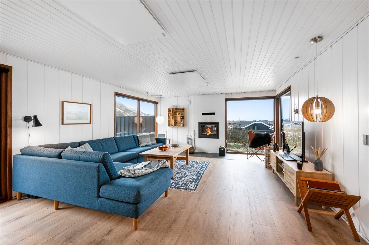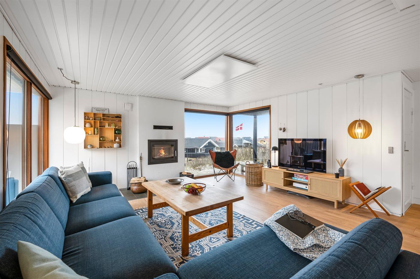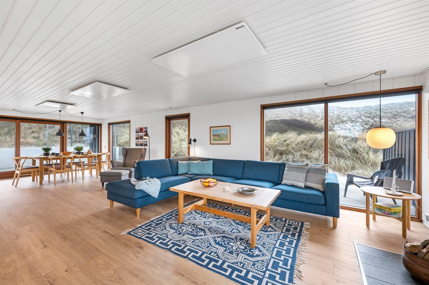 Beliggenheden er aldeles enestående. I dette charmerende sommerhus har du Vesterhavet i forhaven og Ringkøbing Fjord i baghaven. Fra sommerhuset er der en fantastisk udsigt både over klitlandskabet og over Ringkøbing Fjord.