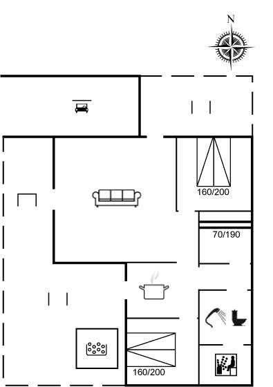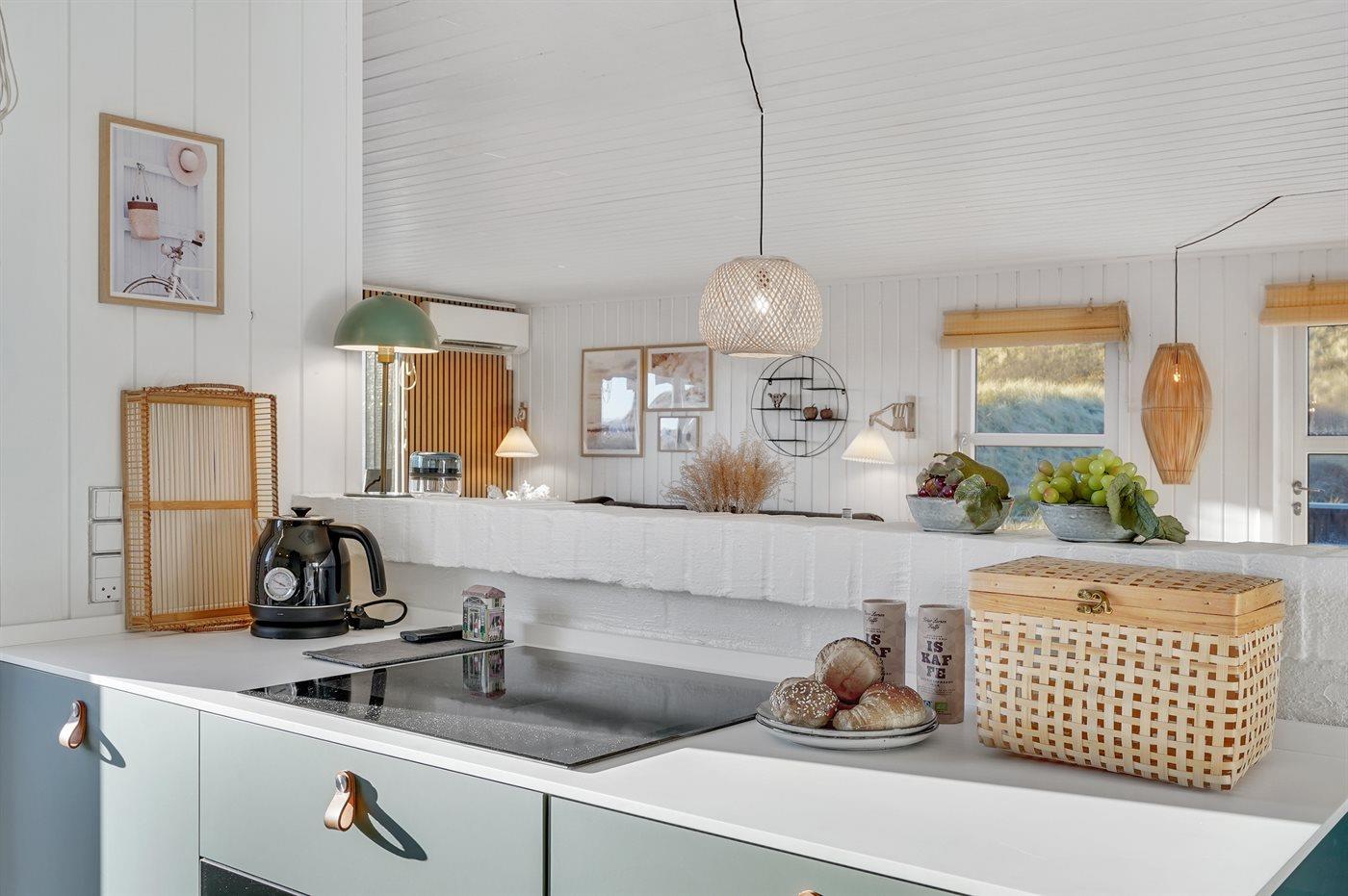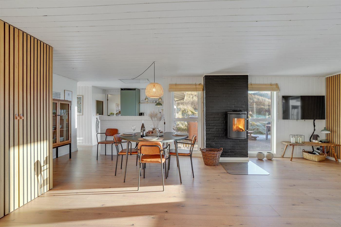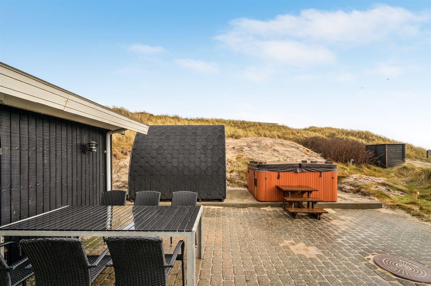 Ferieboligen er beliggende i 2. klitrække på en 1200 m² stor klitgrund på en stille sidevej. Til den dejlige sandstrand ved havet er der kun 75 m og 600 m til fjorden. Nærmeste forretning er beliggende i en afstand af 2500 m. Til ferieboligen hører 50 m² åbent terrasseareal. Desuden er der 12 m² overdækket terrasse. På lune aftener sørger en udendørs pejs for hyggelig stemning. Der er en Weber gasgrill til rådighed. Der er parkering ved ferieboligen med carport.