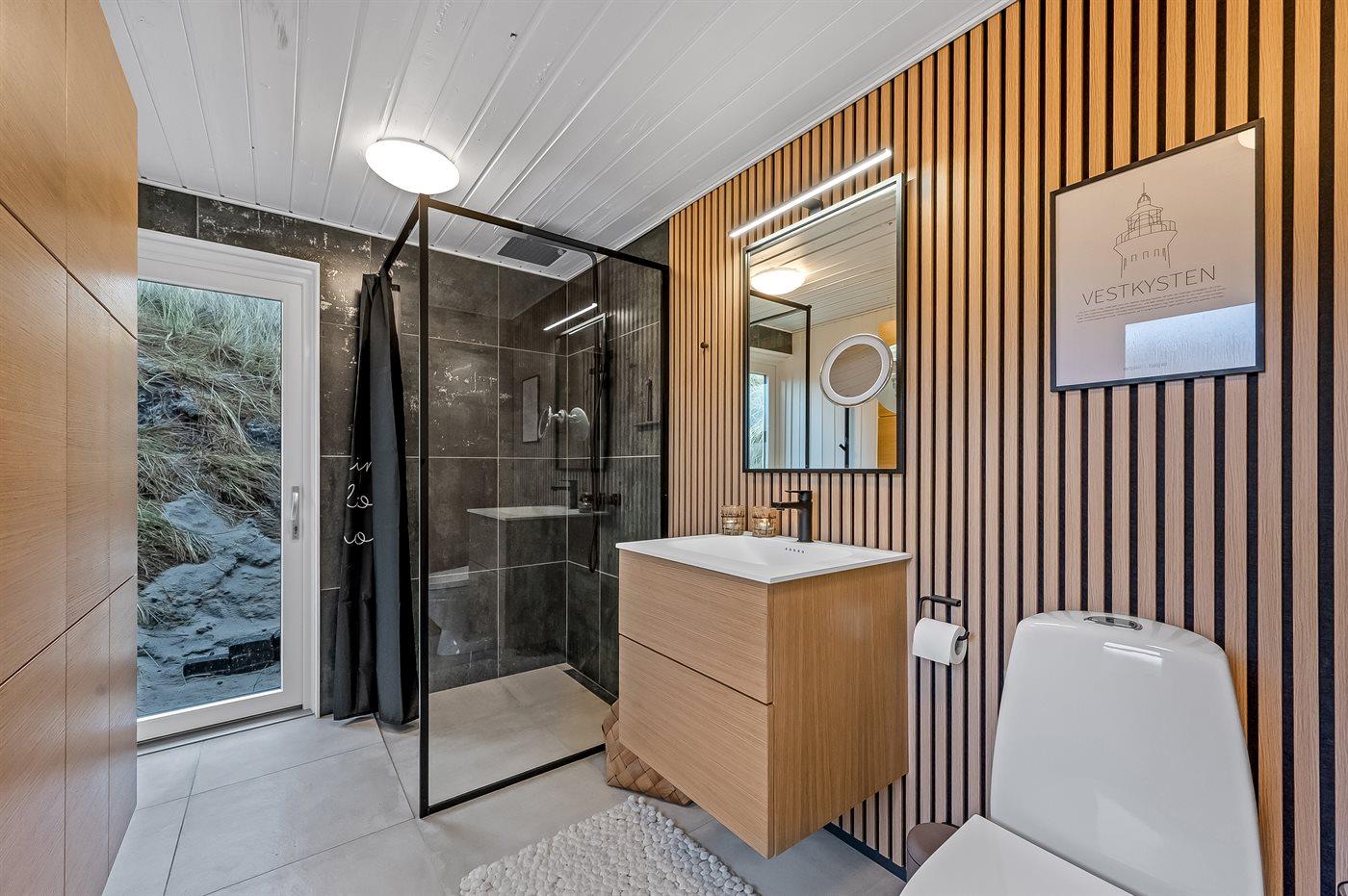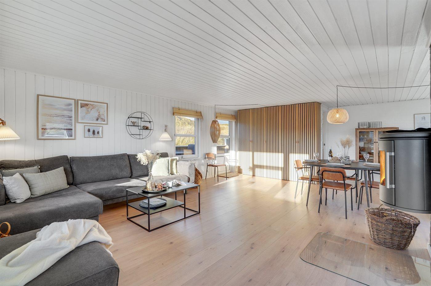 Lækkert nyrenoveret sommerhus der er stilfuldt indrettet i nordisk stil og med kvalitetsmaterialer. Sommerhuset ligger smukt på denne kuperede grund lige ved Vesterhavet. Fra toppen af grunden er der desuden udsigt til Ringkøbing Fjord. Sommerhuset ligger i gå- og cykelafstand på den hyggelige fiskeriby Hvide Sande, og hele området byder på gode aktivitetsmuligheder.