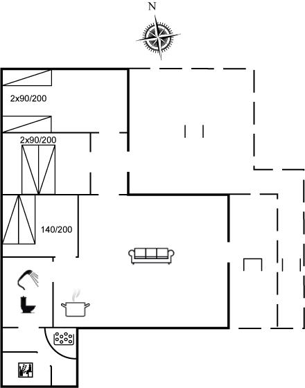 Der er i alt 3 soveværelser. Sovepladserne fordeler sig på: 4 sovepladser i dobbeltsenge. 2 sovepladser i enkeltsenge. Derudover er der 2 stk. barnesenge.