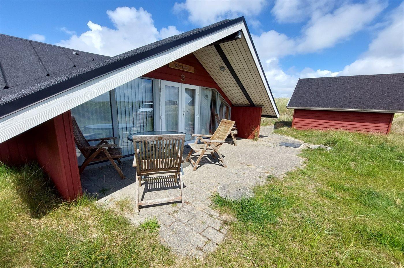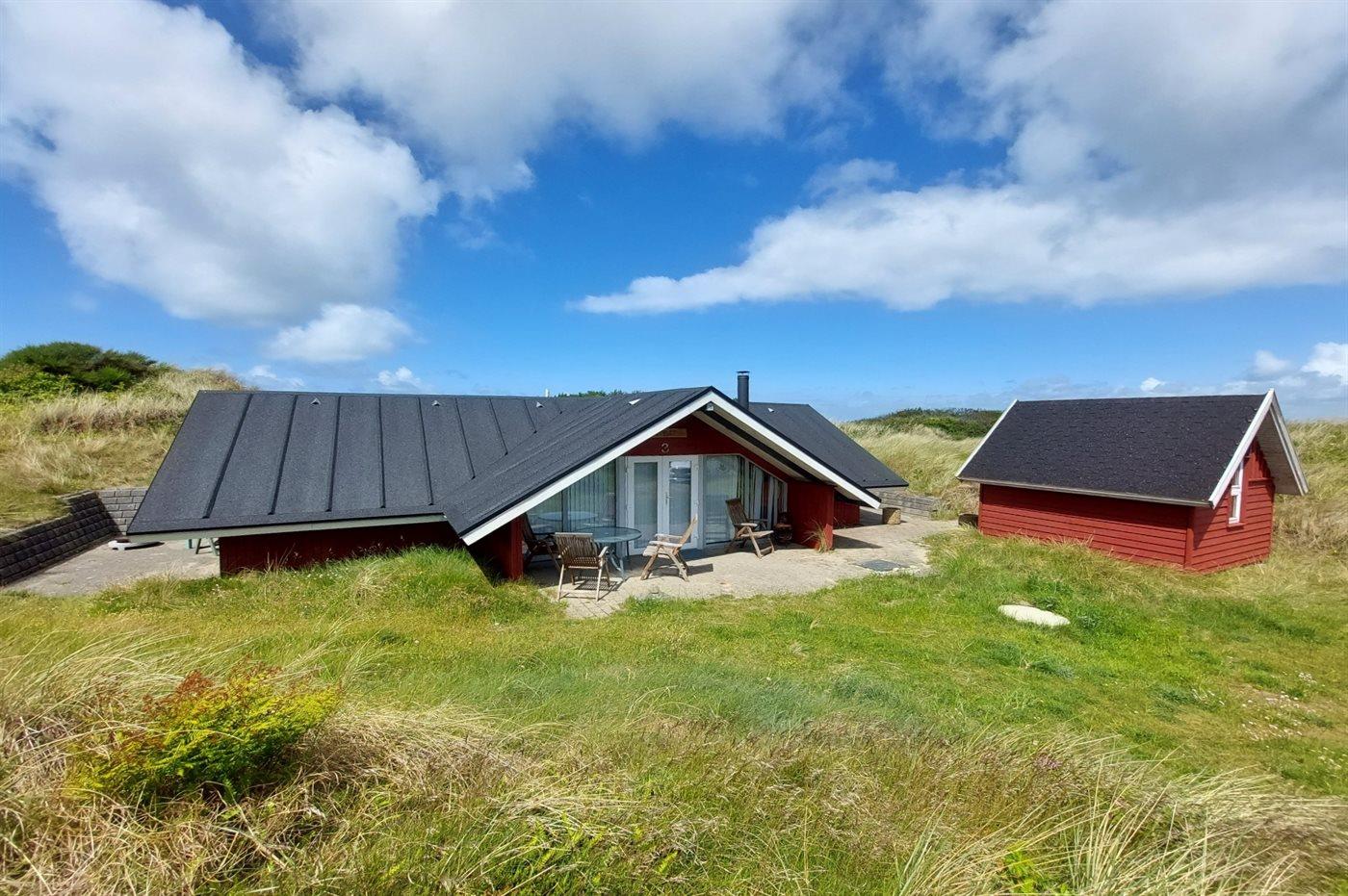 Ferieboligen er beliggende på en 2500 m² stor klitgrund. Der er 300 m til havet. Der er 300 m til fjorden. Der er en sø i en afstand af 300 m. Nærmeste forretning er beliggende i en afstand af 3000 m. Til ferieboligen hører 30 m² terrasseareal. Rutchebane. Grill til rådighed. Parkering ved ferieboligen.